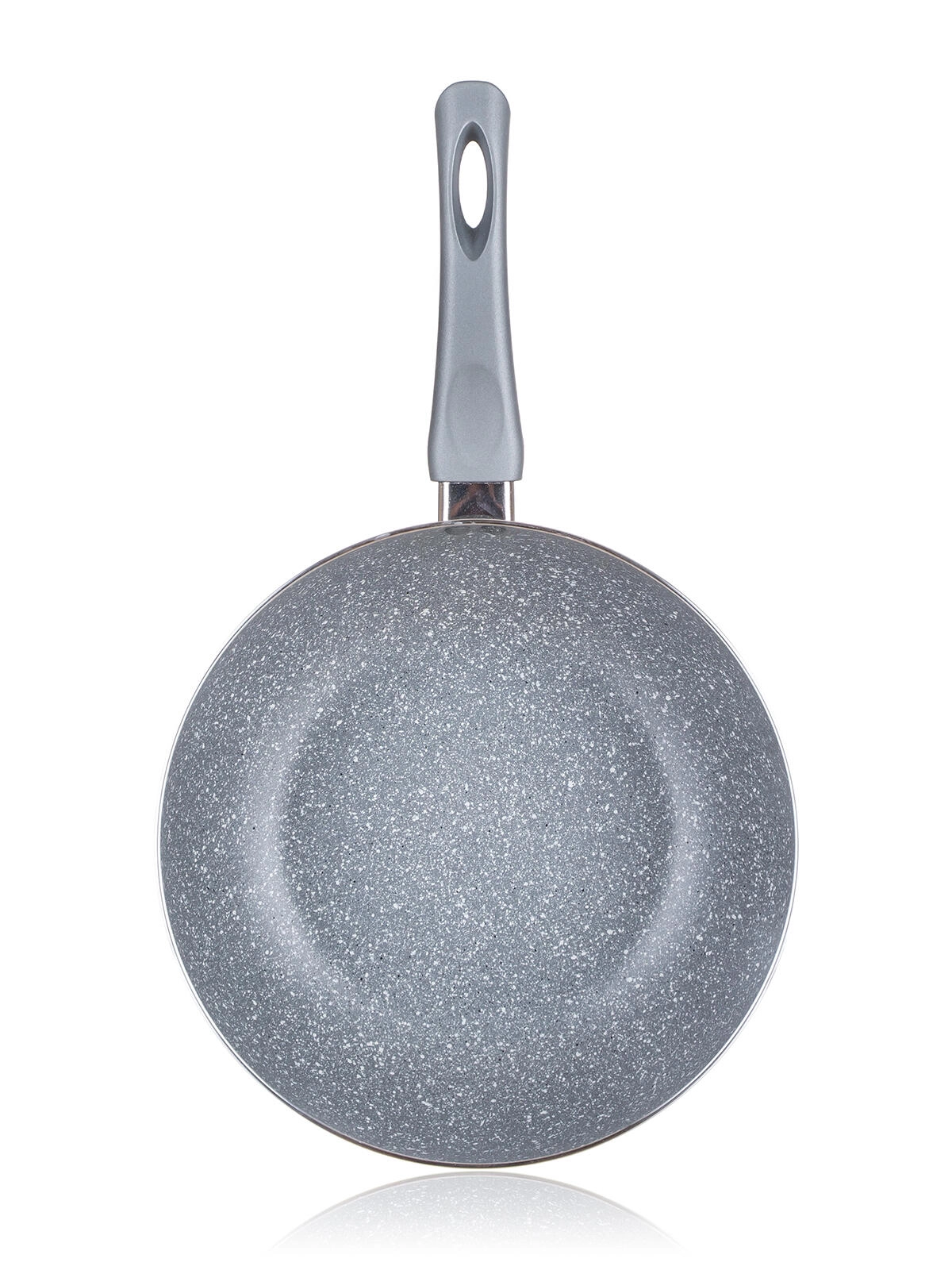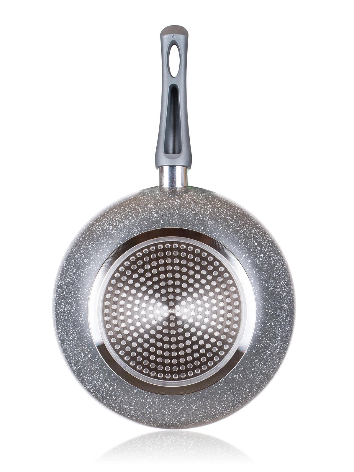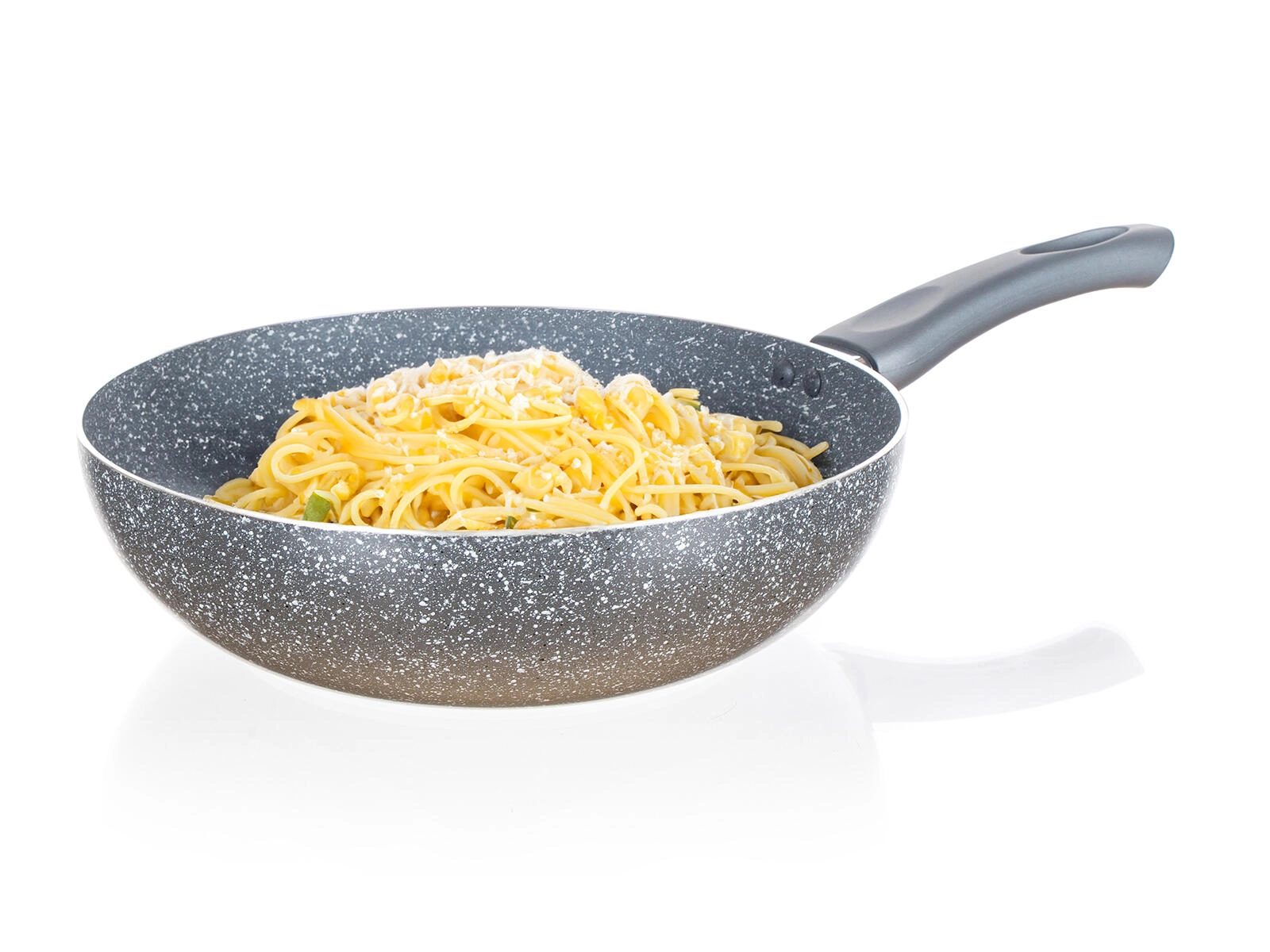 De praktische ergonomische handgreep met soft‑touch afwerking biedt een veilige en zekere grip. De hittebestendige buitencoating verhoogt de duurzaamheid en verlengt de levensduur van de pan. De stijlvolle grijze “granite” look past in elke moderne keuken.