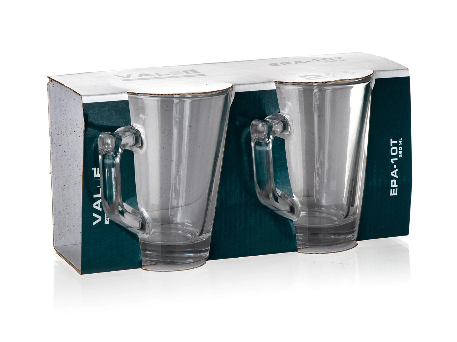 Ontdek de veelzijdige glazen mokken VALUE met een inhoud van 260 ml, die een eenvoudig design, duurzaamheid en comfort bij het serveren van dranken combineren. De conische vorm met een stabiele, dikke bodem en een ergonomisch oor zorgt voor een veilige greep, ook bij hete dranken.