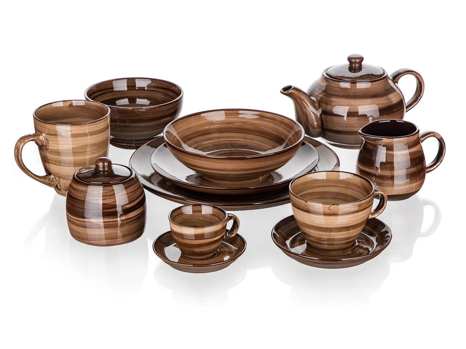 De glanzende glazuur in natuurlijke bruintinten geeft je tafel een moderne, maar tijdloze uitstraling. Eenvoudig te combineren met ander servies.