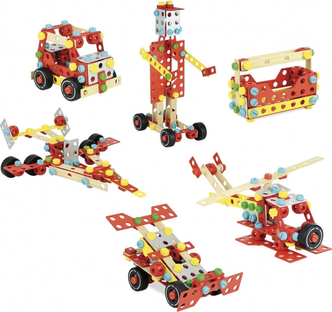 De houten bouwset Vilac Super Batibloc is een ideale keuze voor jonge bouwers. Met meer dan 100 kleurrijke onderdelen, schroeven en verbindingsstukken kunnen de meest uiteenlopende modellen worden gebouwd – van voertuigen tot eenvoudige figuurtjes. De meegeleverde handleiding met 6 projecten helpt bij de eerste pogingen en stimuleert vervolgens de eigen creatieve ontwerpen.
