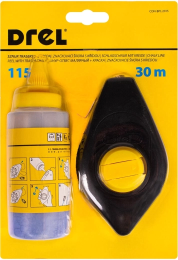 Dit universele afsnoerkoord met poederset is ontworpen voor het snel uitzetten van rechte lijnen op wanden, vloeren en constructies. Dankzij de lengte van 30 m dekt u moeiteloos ook grotere projecten, terwijl het 180 g poeder zorgt voor een goed zichtbare, egale afdruk.