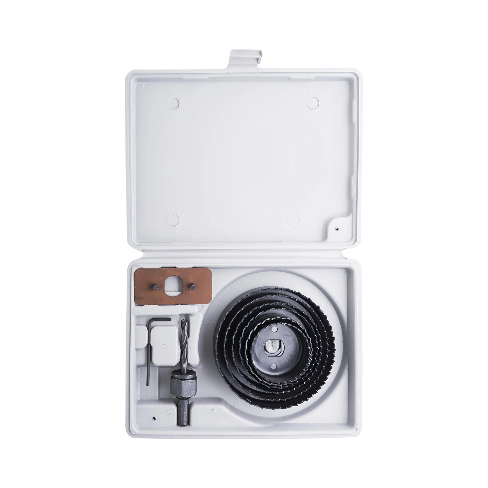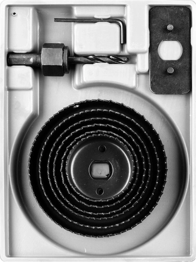 Met deze universele set gatenzagen hebt u alles wat u nodig hebt voor het maken van precieze ronde openingen in gipskarton, hout en plaatmaterialen. Dankzij de selectie van de meest gangbare diameters maakt u eenvoudig openingen voor elektrische stopcontacten, schakelaars, inbouwdozen of kabeldoorvoeren in werkbladen en tafels.