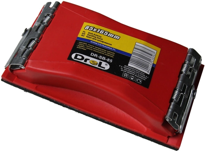 Universele schuurpapiershouder met afmetingen 165 × 85 mm voor nauwkeurig en comfortabel schuren. De combinatie van kunststof, metaal en rubber zorgt voor duurzaamheid, zekere grip en uitstekende hechting aan het oppervlak. Veerclips maken snelle vervanging van papier, doek en schuurnet mogelijk.
