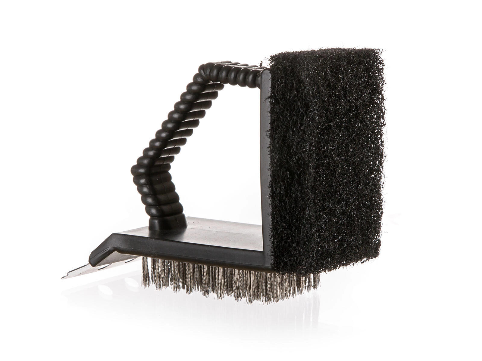 Deze veelzijdige 3-in-1 reinigingsborstel is ideaal voor regelmatig grillonderhoud. Dankzij de combinatie van drie tools in één verwijdert u aangebrande resten, vet en fijne deeltjes efficiënt en zonder onnodige inspanning. De ergonomische kunststof handgreep zorgt voor een comfortabele en stabiele grip.