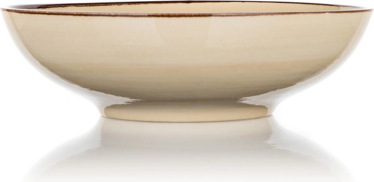 Het crèmekleurige diepe keramische bord Palas met een diameter van 18 cm brengt een harmonieuze combinatie van functionaliteit en esthetiek. De neutrale tint en subtiele randaccentuering benadrukken je gerechten en passen moeiteloos in elke keukenstijl. De duurzame glazuur ondersteunt dagelijks gebruik en eenvoudig onderhoud.