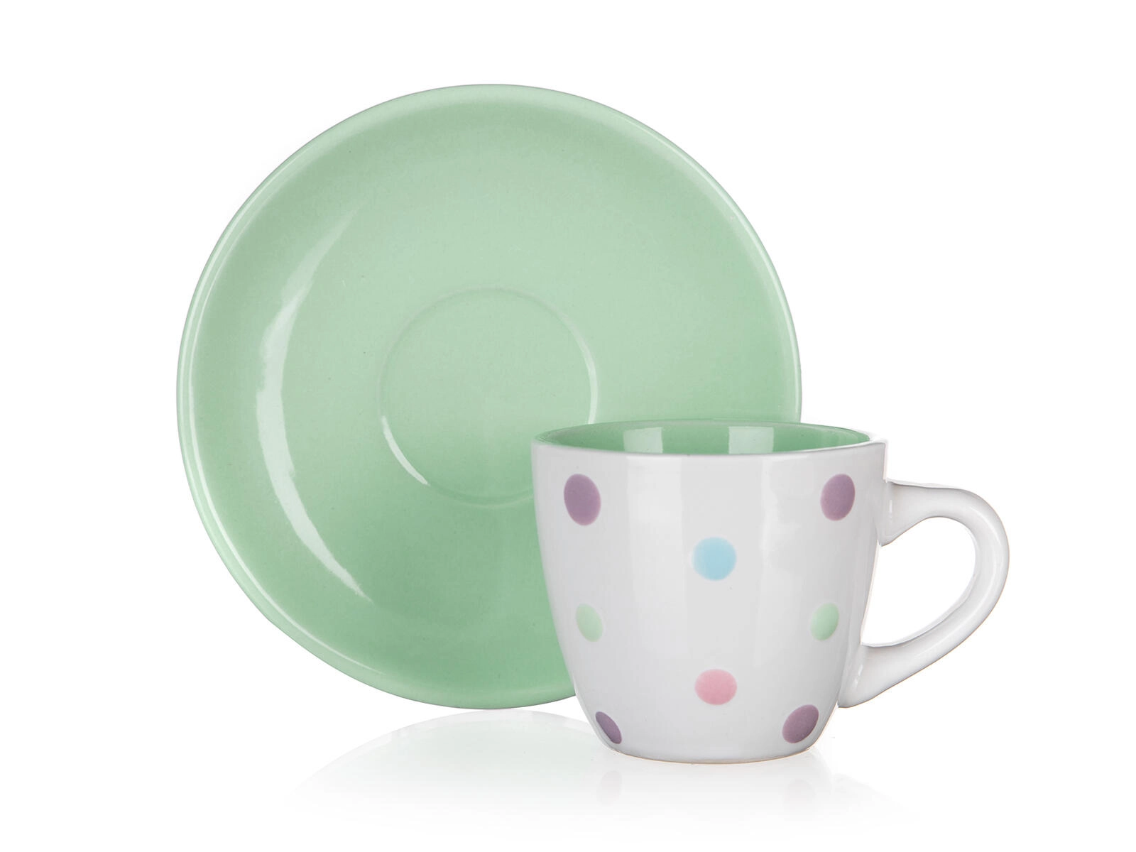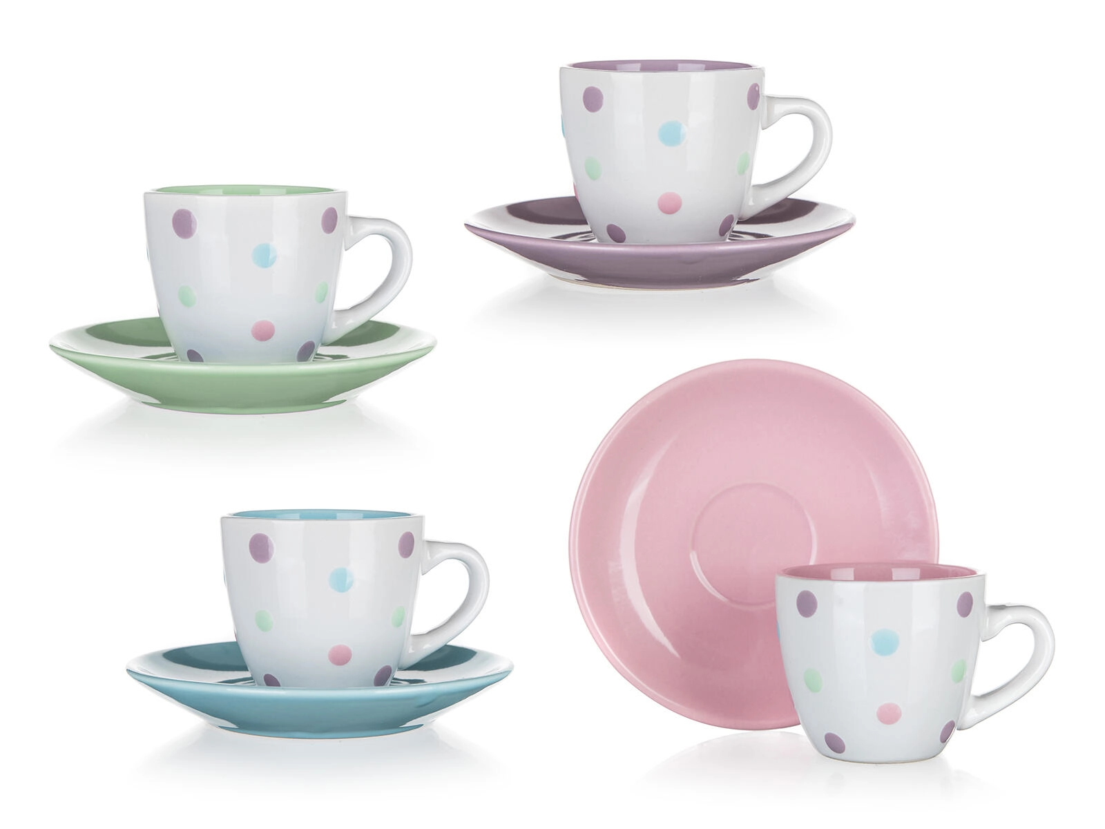 Speelse pastelkleuren met polkadot-patroon en een bijpassende schotel geven jouw thuiscafé een eigen charme. Eenvoudig onderhoud en een duurzame uitvoering maken van PUNTO een praktische aanvulling voor elke keuken.