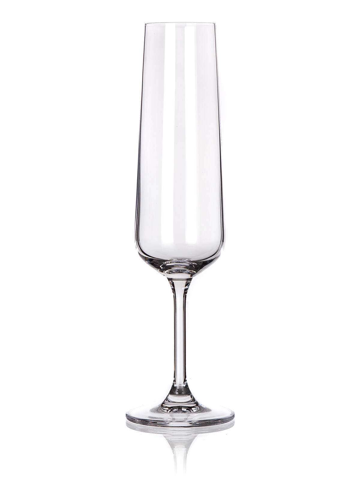 Geniet stijlvol van de bubbels. De champagneglazen Marta met een inhoud van 205 ml hebben de slanke vorm van een flûte, die helpt de pareling te behouden en het aroma te benadrukken. Dankzij het hoogwaardige glas uit Slowaakse productie en de geharde rand bieden ze een lange levensduur, ook bij veelvuldig gebruik.