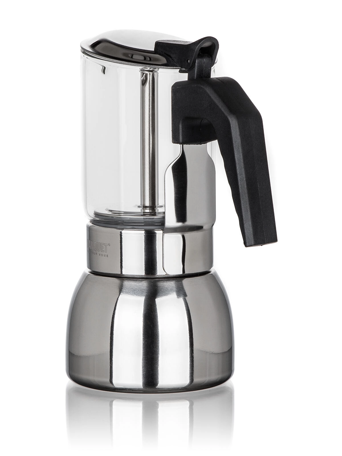 Ontdek thuis de bereiding van aromatische, sterke koffie met het mokapotje LENA. Het combineert roestvrij staal, transparant glas voor controle over de extractie en een veiligheidsventiel voor zorgeloos gebruik. Het compacte volume van 200 ml (tot 4 kopjes) is ideaal voor je dagelijkse ritueel. Geschikt voor gas, elektrisch, keramisch en inductie.
