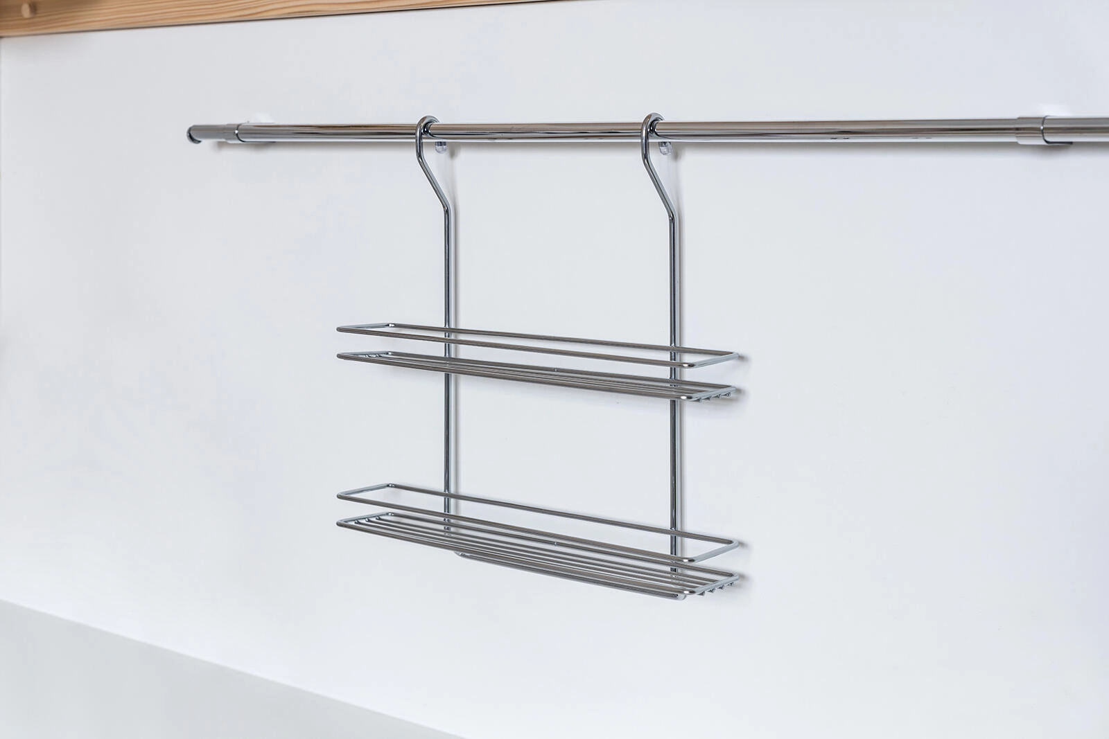 Zowel de bovenste als de onderste plank zijn ontworpen voor potjes met een maximale diameter van ca. 5,5 cm, inclusief AROMI-kruidenpotjes. De duurzame chroomafwerking beschermt tegen corrosie en vereenvoudigt het onderhoud. Hang de plank eenvoudig aan een geschikte rail of stang en creëer direct meer werkruimte.