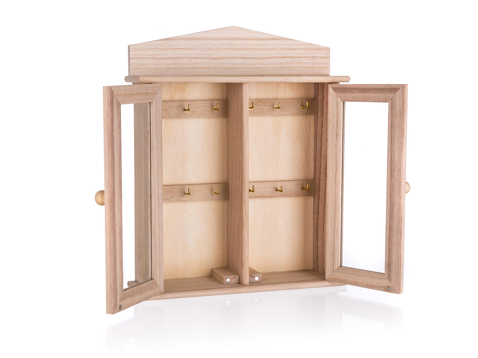 Het kastje is ontworpen voor eenvoudige wandmontage en overzichtelijke organisatie van de sleutels van het hele gezin. Dankzij het universele design past het in zowel moderne als traditionele interieurs en helpt het elke dag orde te houden.