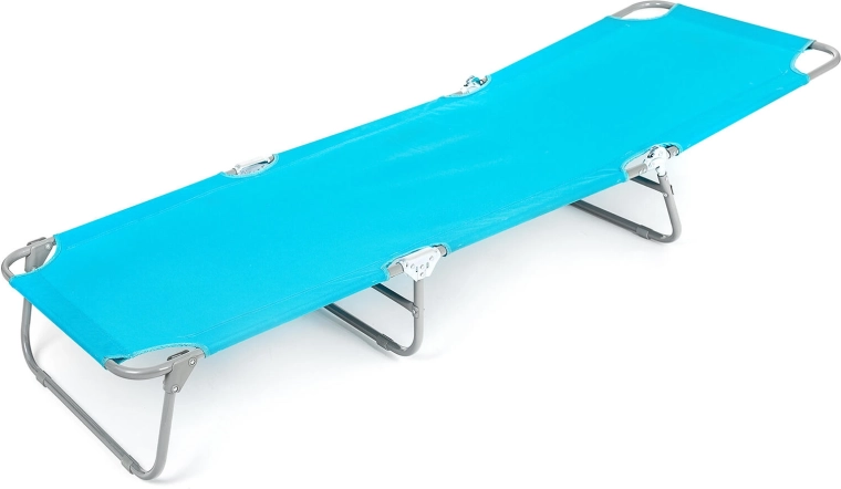 Geniet van comfortabele ontspanning met de SUNBAY ligstoel in lichtblauw. De stevige metalen constructie, de duurzame 600D Oxford stof en de verstelbare rugleuning en voetsteun zorgen voor comfort in de tuin, op het terras en bij het zwembad. Met een draagvermogen van 100 kg en compacte afmetingen van 186 × 53 × 24 cm is hij ideaal voor dagelijks relaxen.
