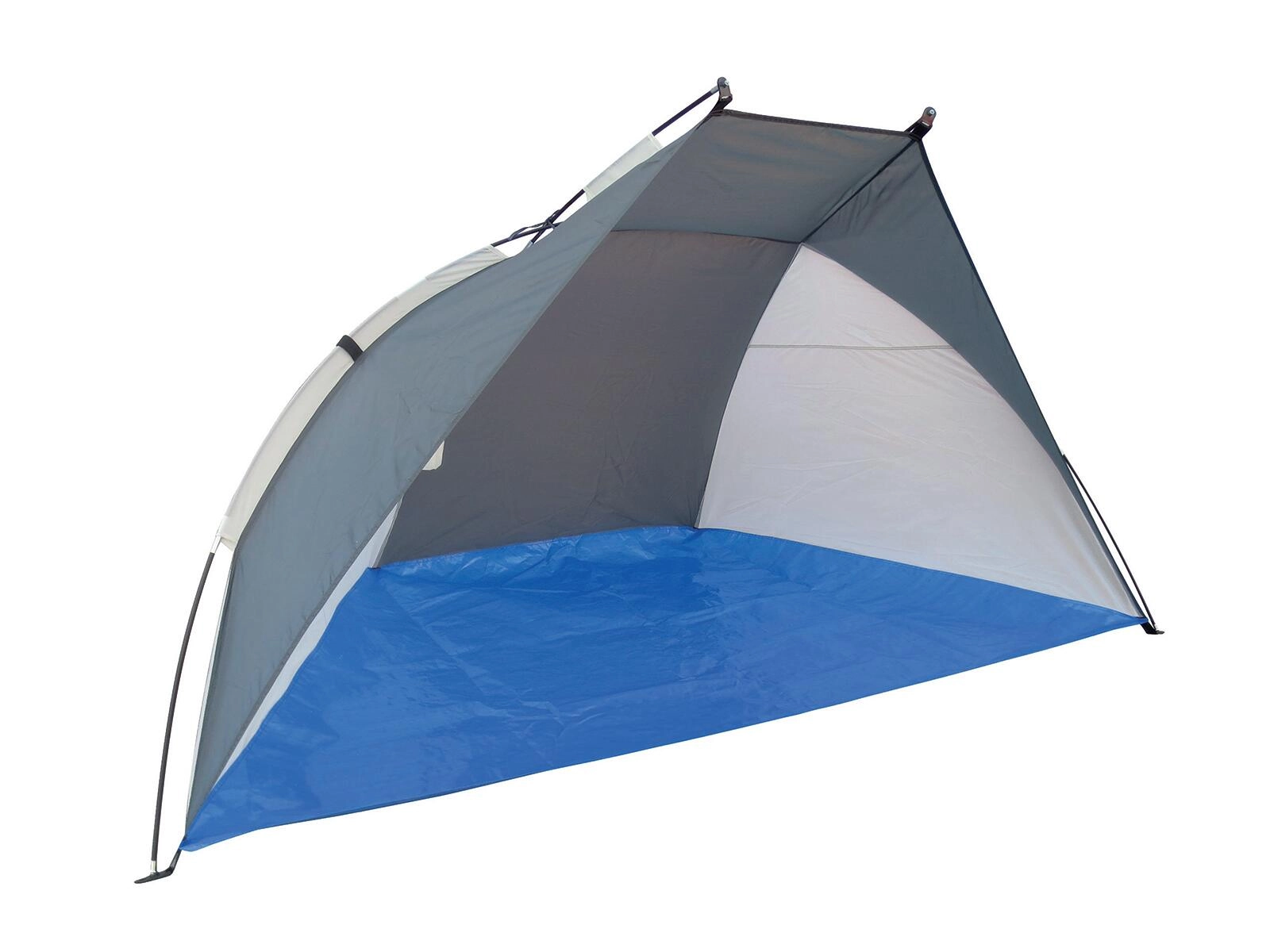 Duurzaam 170T polyester met geïntegreerde bodem biedt schaduw en windbeschutting voor relaxen aan het water.