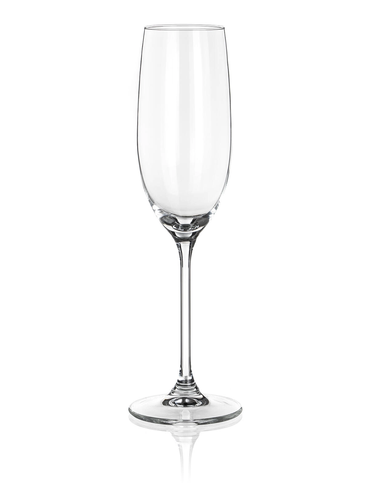 De set van zes heldere DINING-flûtes is ideaal voor het serveren van champagne, prosecco en andere mousserende wijnen. Het minimalistische design accentueert de kleur en pareling van de drank, terwijl de smalle kelkvorm helpt het aroma te concentreren en de bubbels langer te behouden.