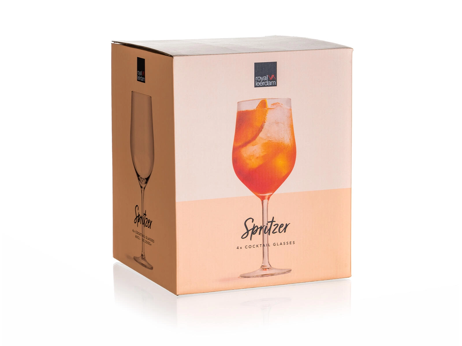 Geniet van verfrissende spritzers, longdrinks of alcoholvrije cocktails in de stijlvolle SPRITZER-glazen met een inhoud van 600 ml. Het merk ROYAL LEERDAM staat garant voor nauwkeurige afwerking en kristalheldere transparantie van het glas, waardoor zowel de kleur als de pareling van de drank prachtig uitkomt.