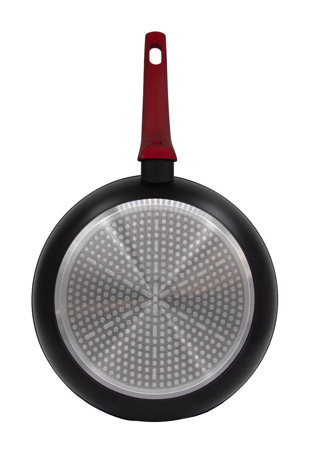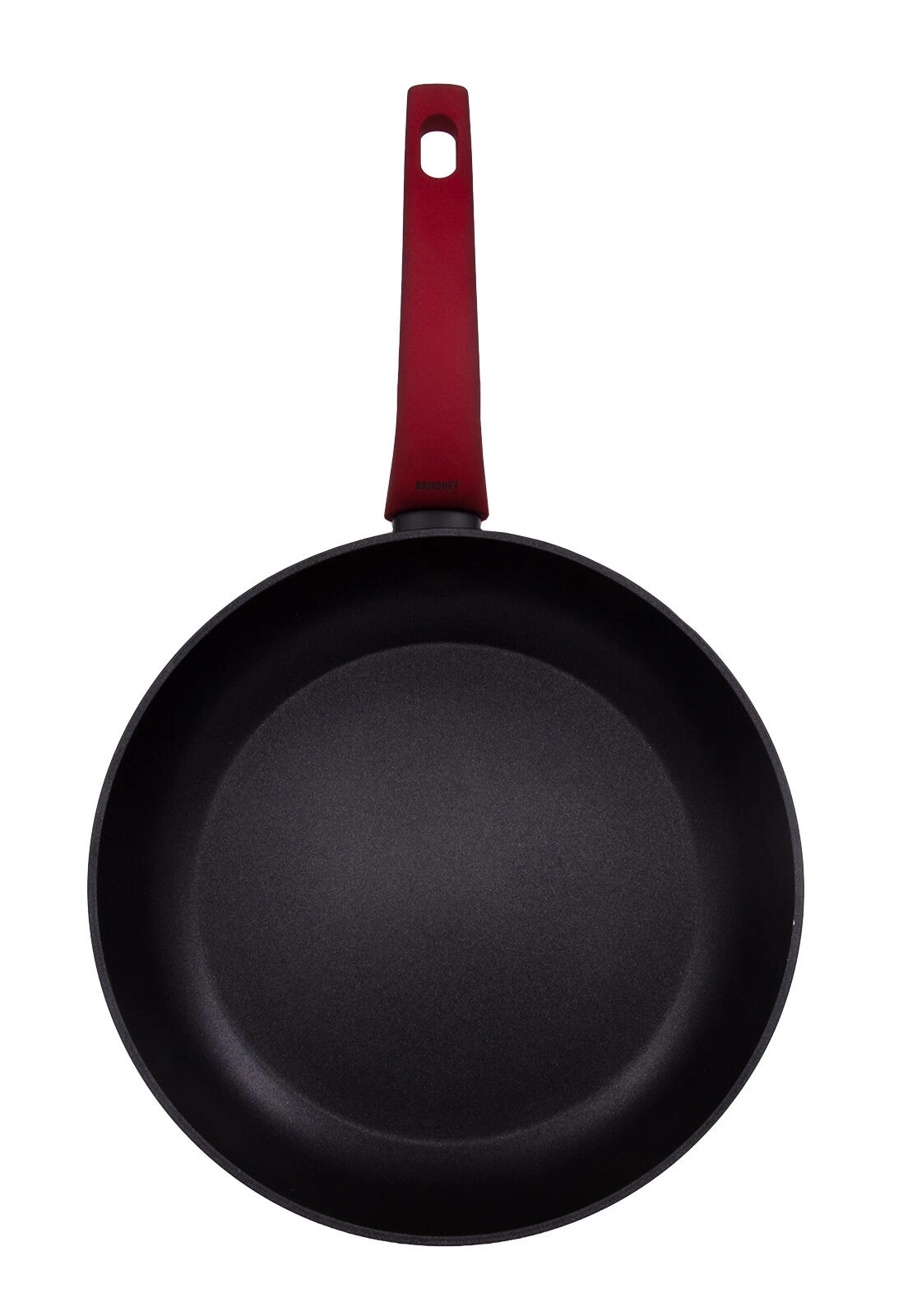 Het doordachte ontwerp met een zachte soft-touch handgreep garandeert een comfortabele en veilige grip. De pan is compatibel met alle kookplaten, inclusief inductie, en dankzij de hoge thermische traagheid blijven gerechten langer warm – ideaal voor efficiënt en zuinig koken.