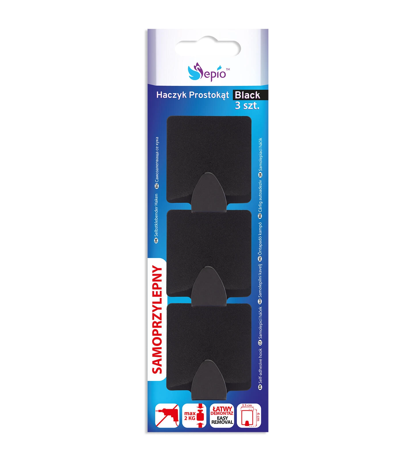 Rechthoekige zelfklevende haken met afmetingen 3,5 × 4 cm besparen tijd en ruimte. De metalen uitvoering zorgt voor een lange levensduur en een minimalistische look die eenvoudig te combineren is met een modern interieur. Ideaal voor het ophangen van handdoeken, theedoeken, sleutels of kabels.