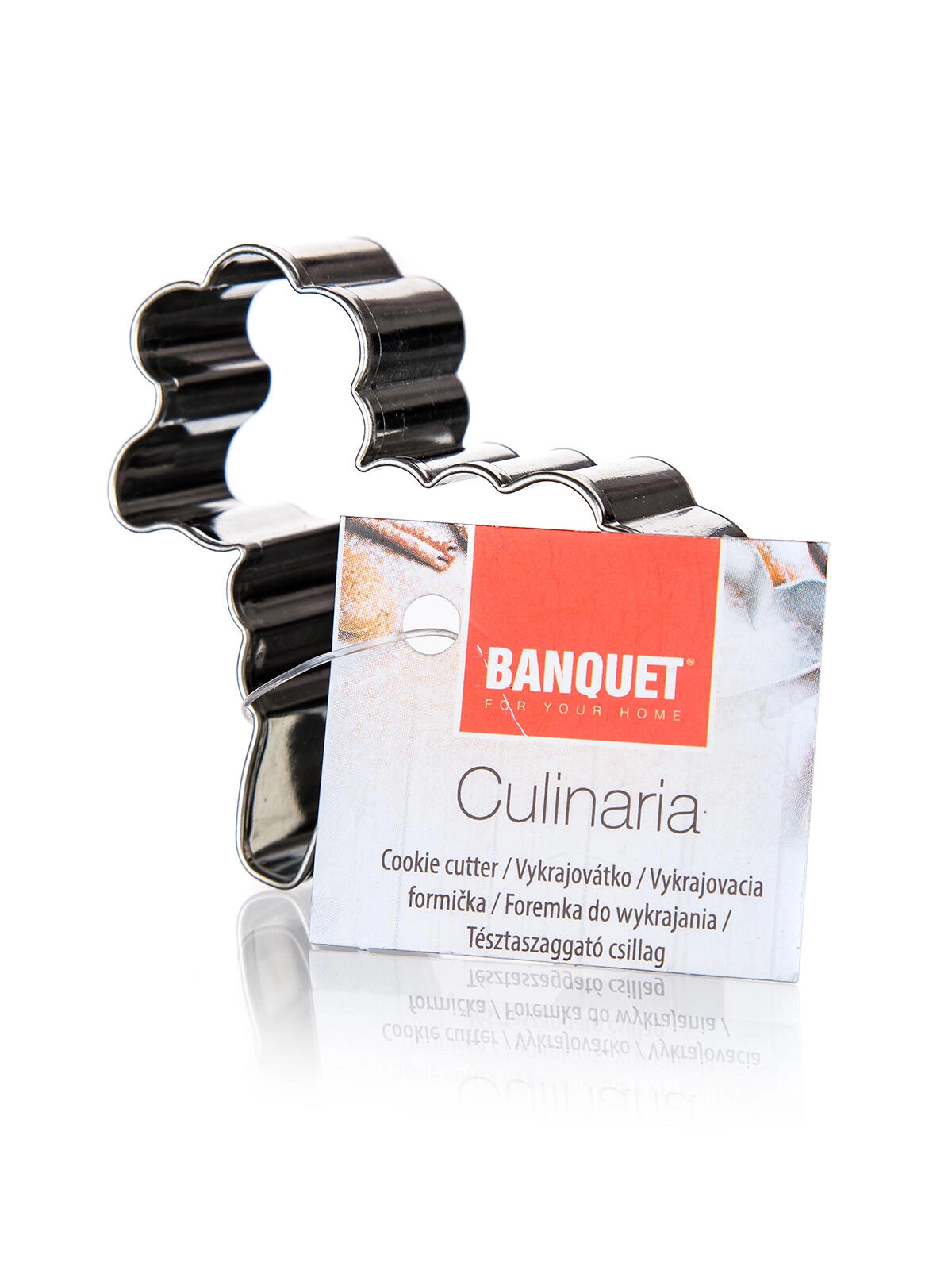 Praktische koekjesuitsteker in de vorm van een schaap van vertind plaatstaal voor het eenvoudig uitsteken van zanddeeg, peperkoek en koekjes. Duurzaam materiaal, preciese vorm en eenvoudig onderhoud voor perfecte bakresultaten.