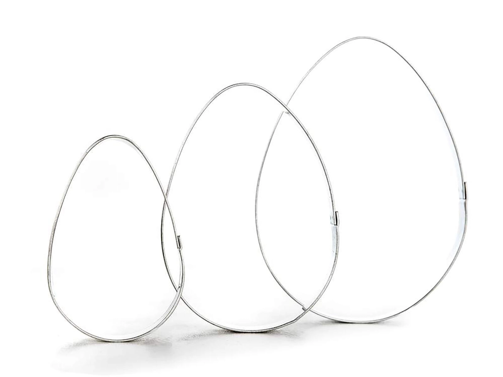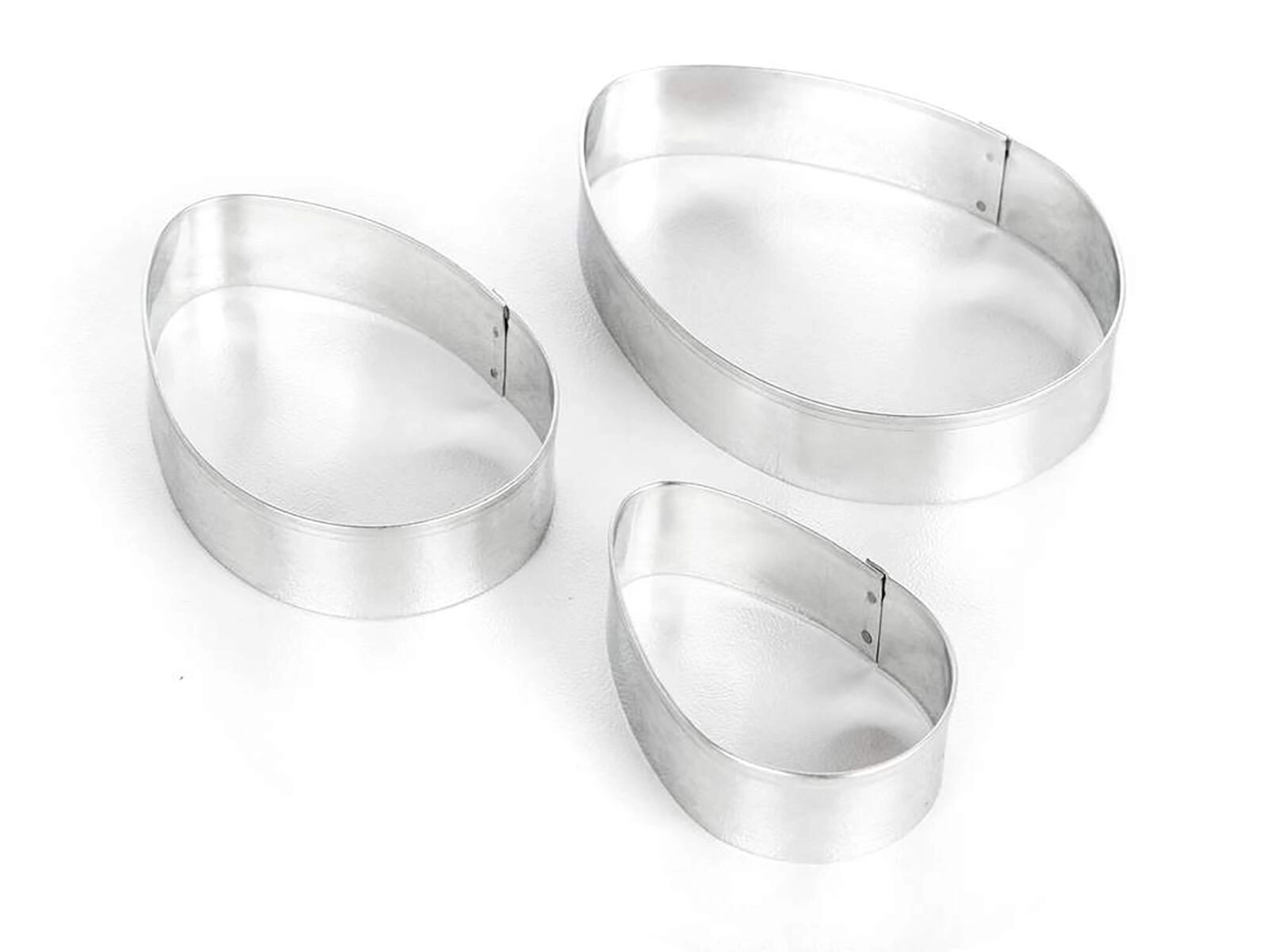 Praktische set van 3 uitsteker in eivorm voor eenvoudig bakken van paas- én het hele jaar door koekjes. Duurzaam verzinkt plaatstaal zorgt voor een strakke snede en lange levensduur, drie formaten maken creatief decoreren en stapelen van vormen mogelijk.