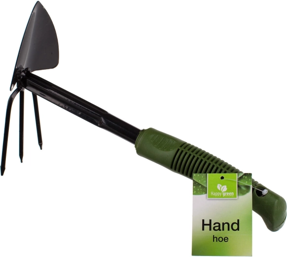 Praktische handmatige hak met een vlakke zijde en 3 tanden, ideaal voor kleine tuinklussen, het losmaken van de bodem en wieden. De anatomisch gevormde kunststof handgreep zorgt voor een comfortabele en veilige grip, zelfs bij langer werken. De duurzame metalen kop biedt een lange levensduur en efficiënte prestaties.