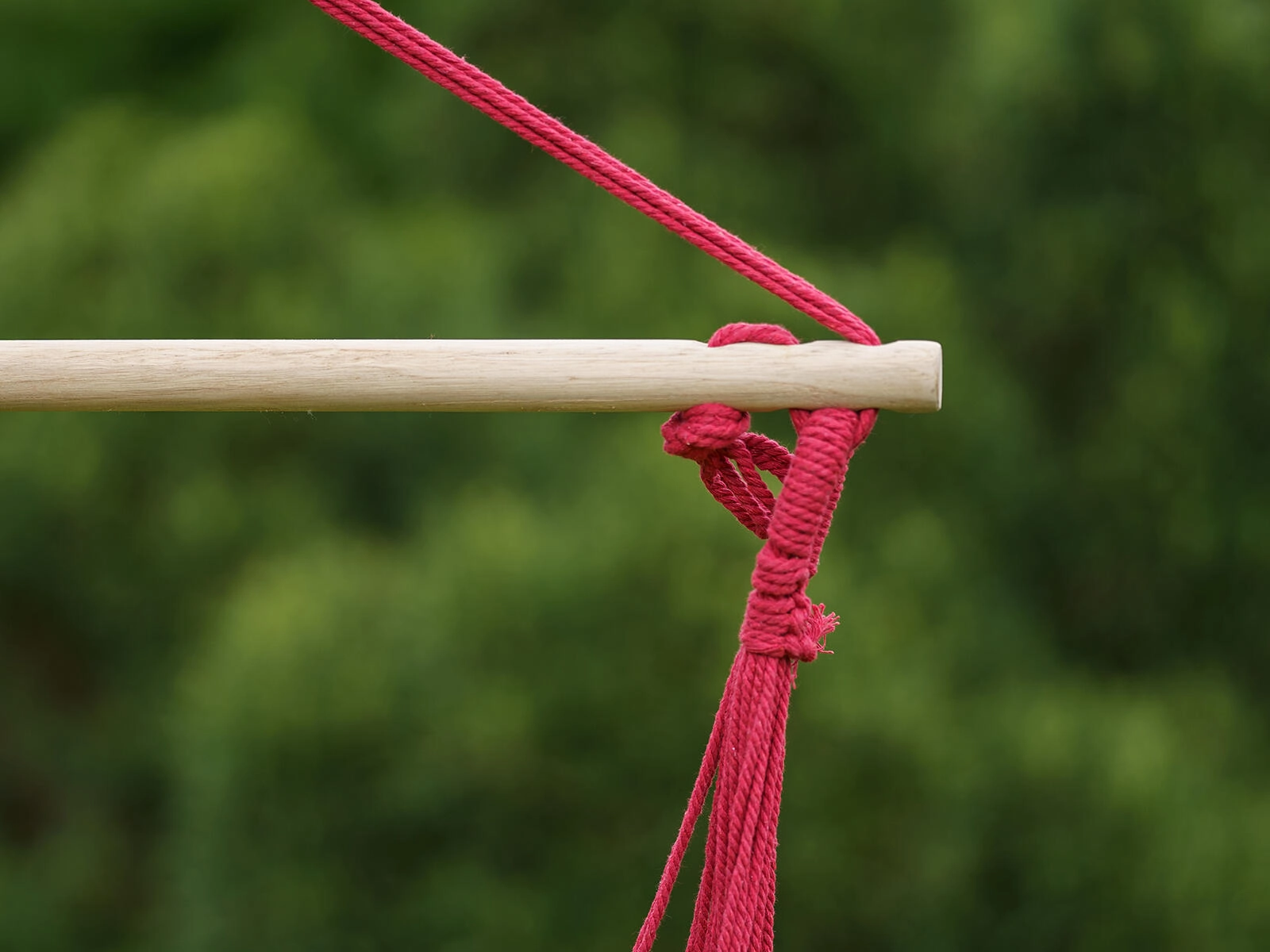 Eenvoudige montage aan een plafondhaak of standaard. Sterk ophangtouw en veilige knopen zorgen voor zekerheid tijdens het schommelen.