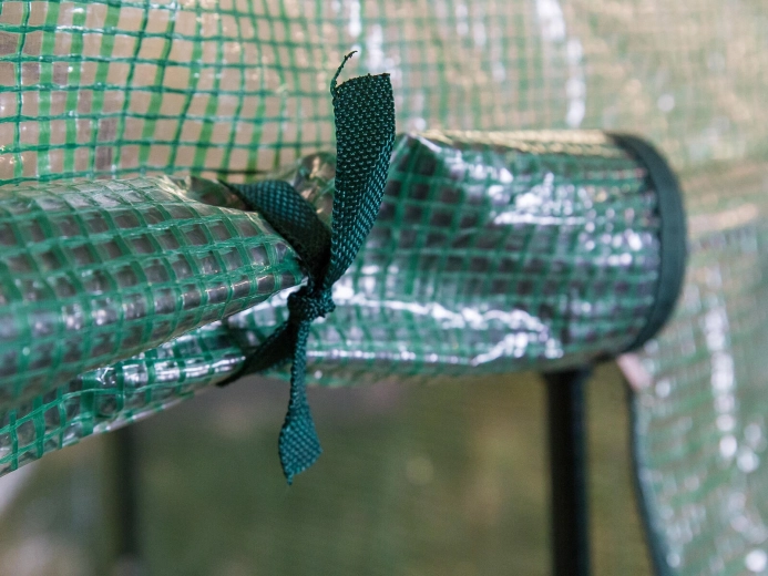 De voorste oprolbare deur met twee ritsen vergemakkelijkt de bediening en maakt het mogelijk de ventilatie en luchtvochtigheid in de kweekkas te regelen.