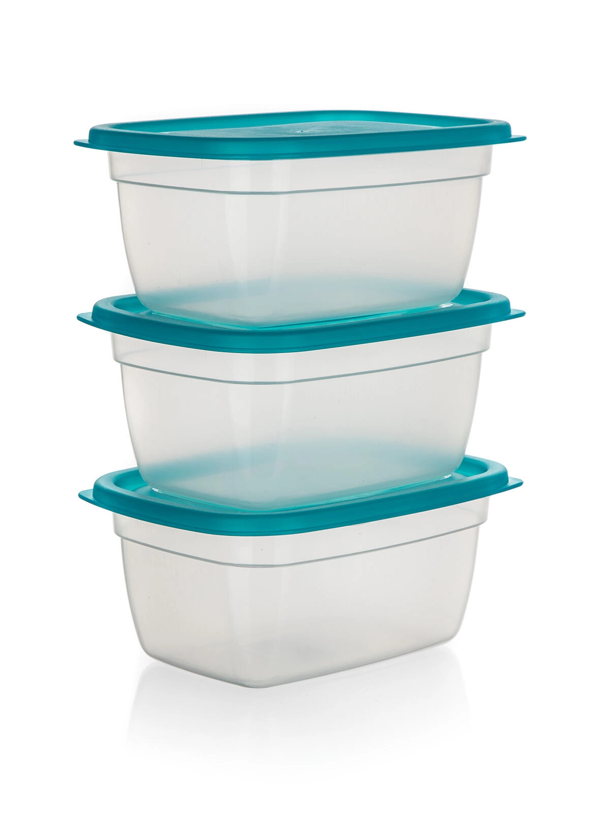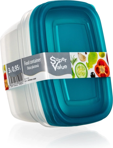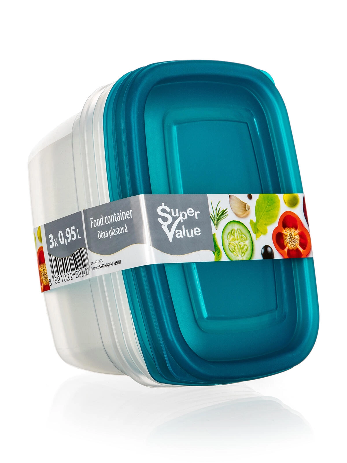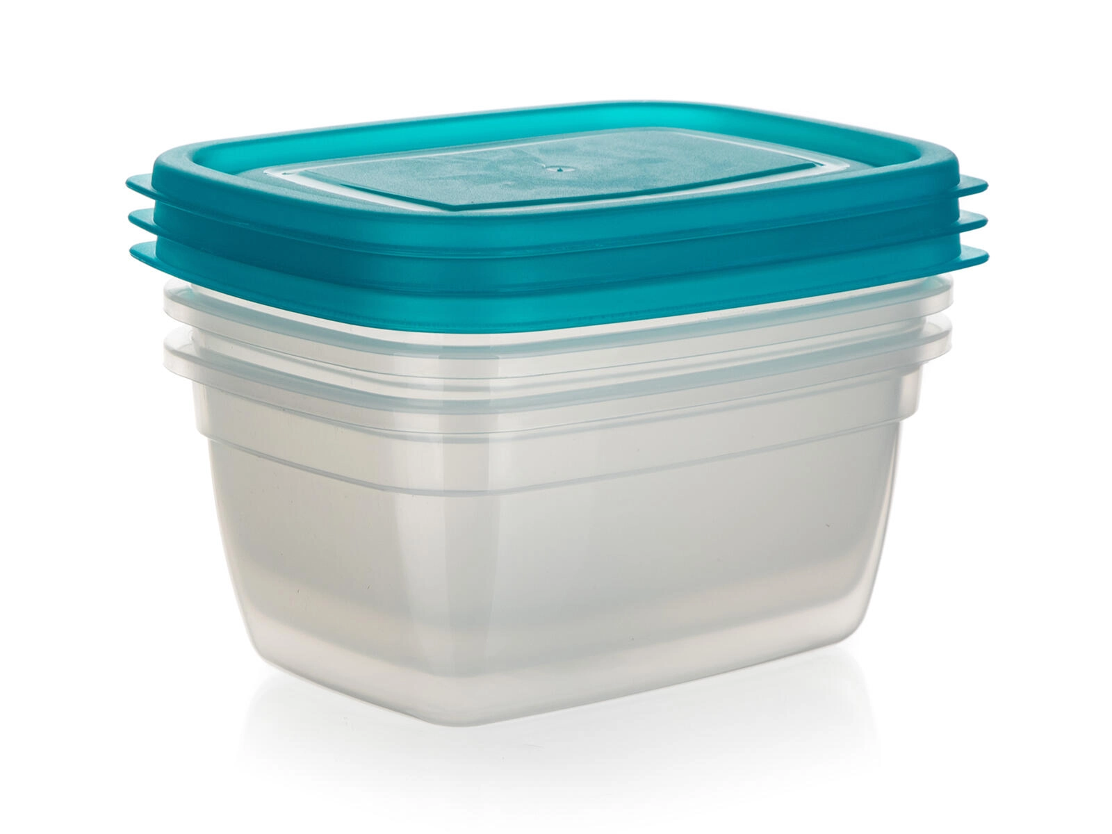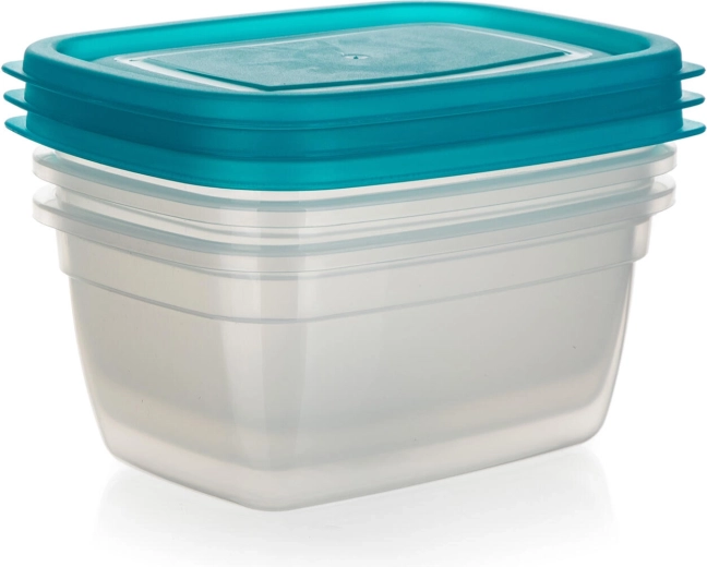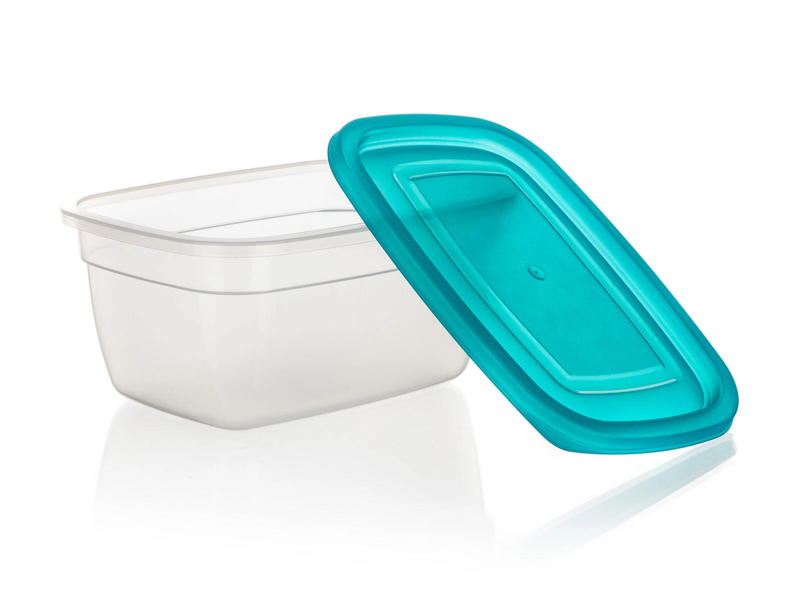Houd orde in koelkast en voorraadkast met deze veelzijdige set plastic bakjes van 0,95 l. De stevige, lichte en transparante constructie maakt snelle identificatie van de inhoud mogelijk, terwijl de turquoise klikdeksels helpen geurtjes te beperken en voedsel langer vers te houden.