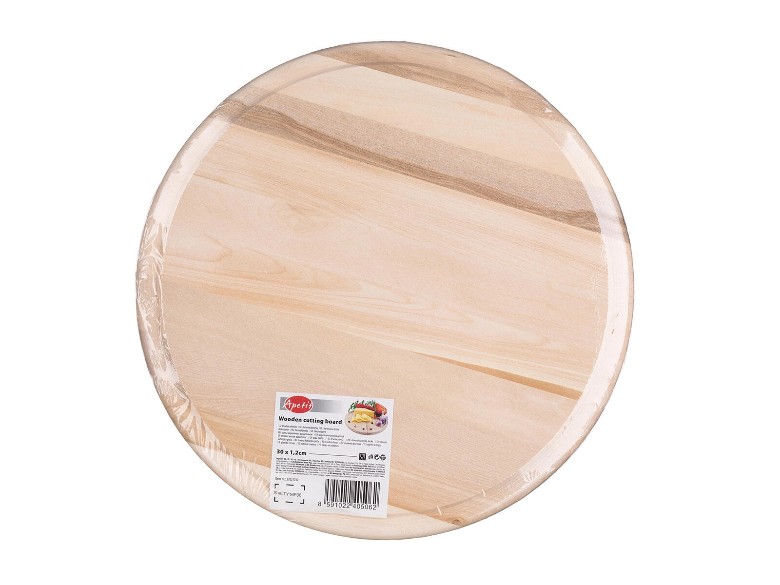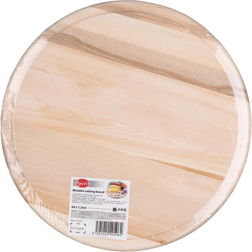 Kwalitatief houten snijplankje APETIT met een diameter van 30 cm, ideaal om zowel te bereiden als te serveren. Het heeft een ronde vorm en langs de rand een praktische sapgeul, zodat het werkblad schoon blijft. Het natuurlijke berkenhout is duurzaam, mesvriendelijk en past perfect in elke keuken.