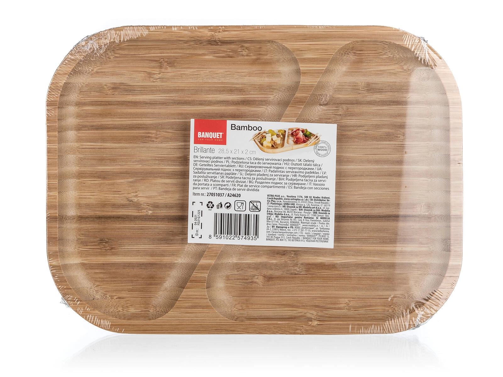 De gescheiden secties maken het mogelijk om meerdere soorten hapjes te serveren zonder dat smaken zich vermengen. De schaal is een uitstekende keuze voor dagelijks gebruik én voor het stijlvol ontvangen van gasten. Voor een harmonieuze look in de keuken kun je hem combineren met andere producten uit de BRILLANTE BAMBOO-lijn.