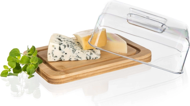 Deze stijlvolle boterdoos combineert natuurlijk bamboehout met een duurzaam acryl deksel dat de inhoud beschermt tegen uitdroging, geuren en vuil. De transparante kap maakt directe controle mogelijk, terwijl de stevige houten basis ook als serveerplankje dient.