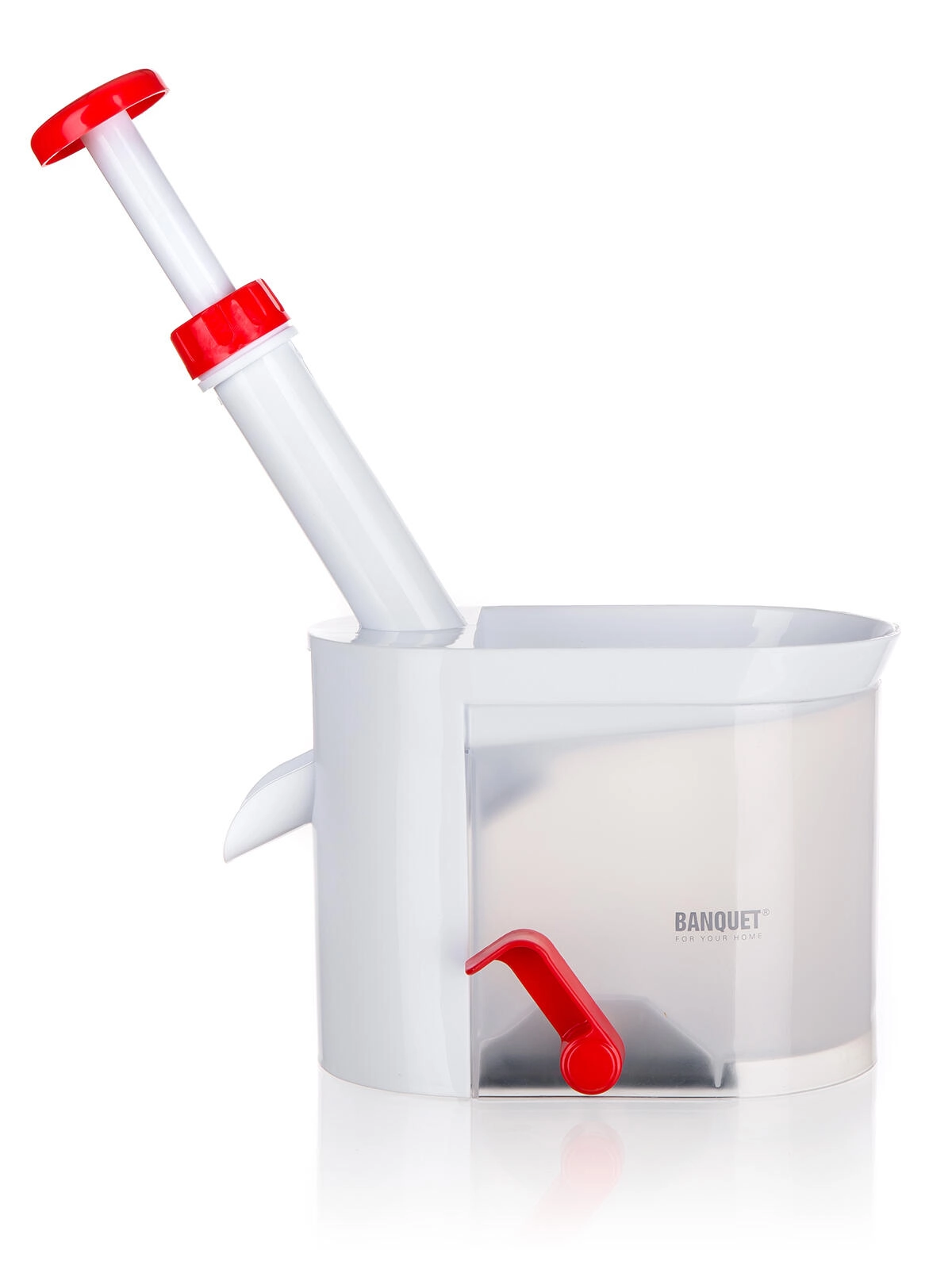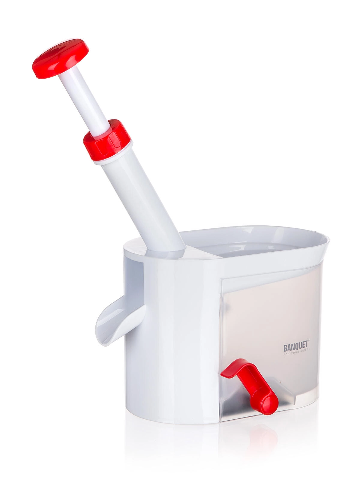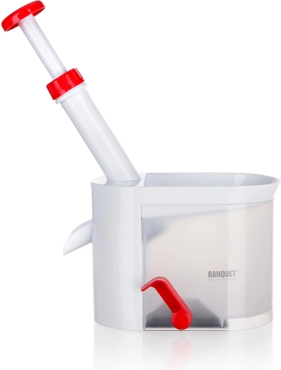 Het apparaat is gemaakt van duurzaam kunststof in rood-witte uitvoering, is gemakkelijk uit elkaar te halen en te reinigen. Ideaal voor grotere hoeveelheden fruit – compotes, confituren, bakken en invriezen. Het compacte formaat bespaart ruimte in de keuken.