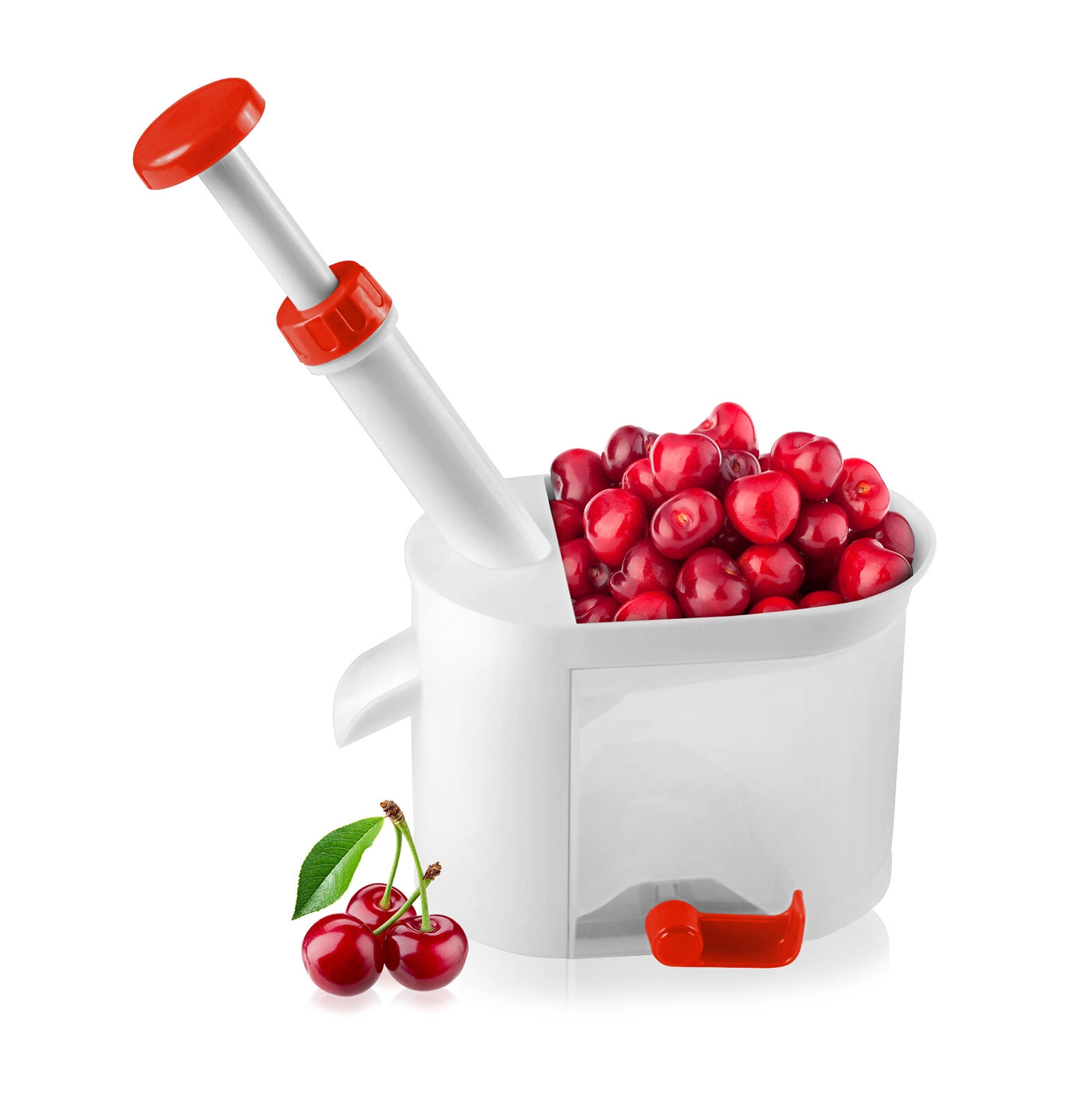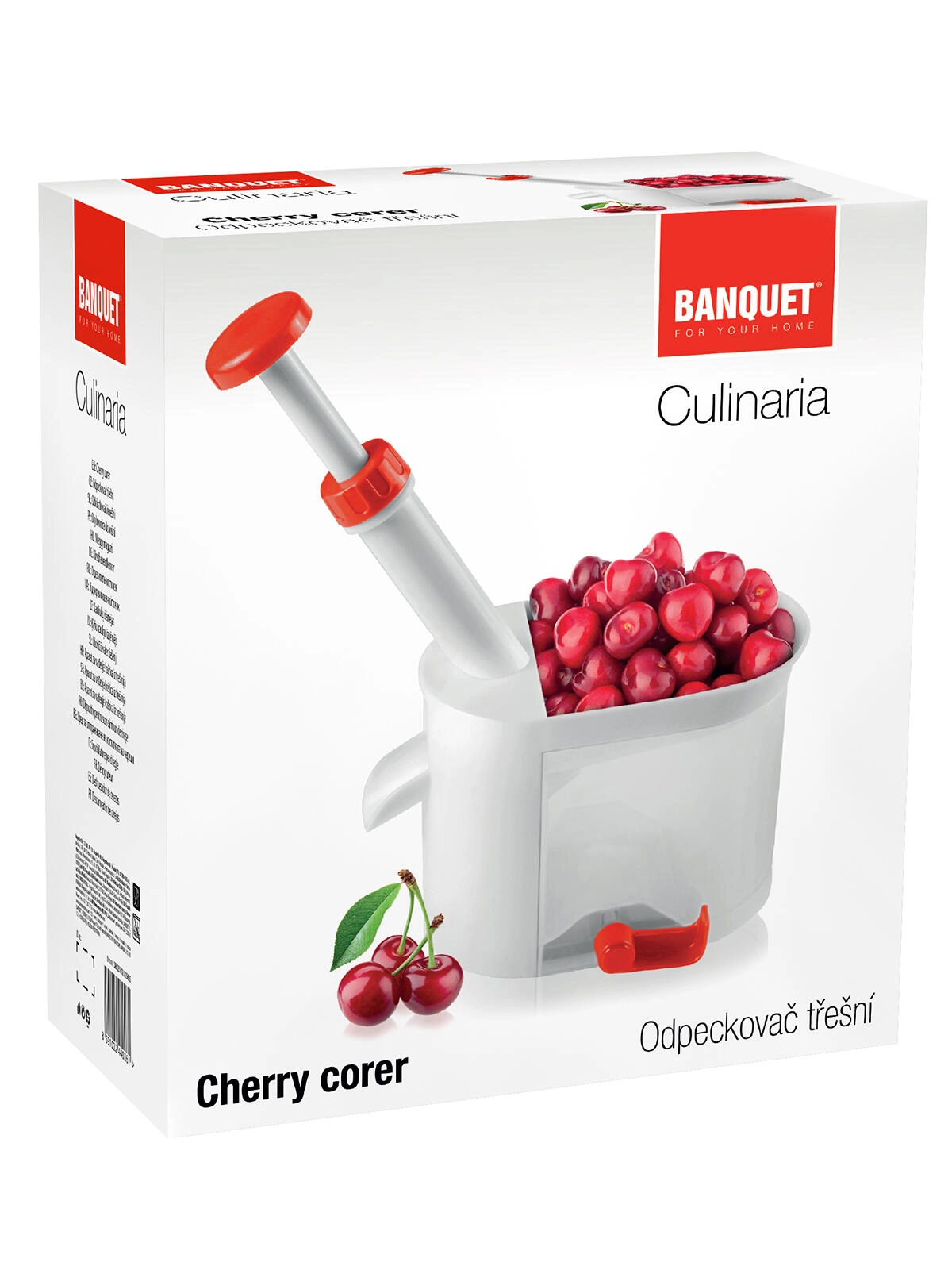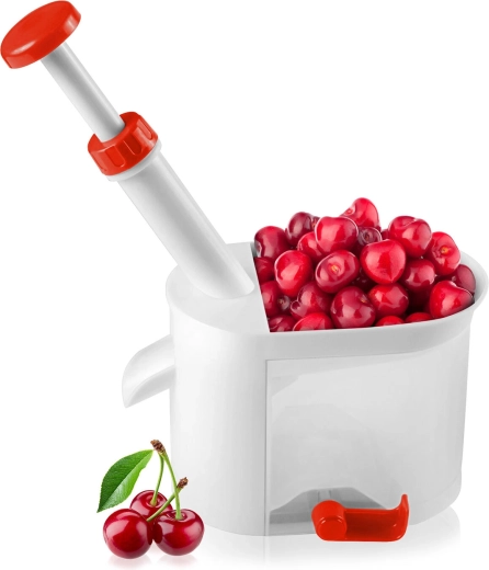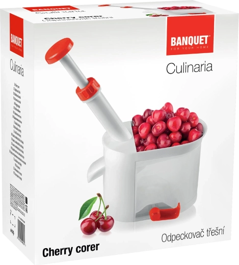 Maak het ontpitten van kersen eenvoudiger met de Culinaria Red ontpitter. De hoge behuizing met hefboom maakt comfortabel ontpitten met één hand mogelijk, de transparante opvangbak verzamelt zowel pitten als sap en de rode bedieningsdelen zorgen voor een nauwkeurige geleiding van de plunjer. Rubberenzuignappen op de basis garanderen stabiliteit tijdens het werken.