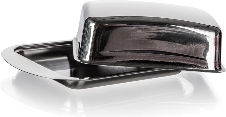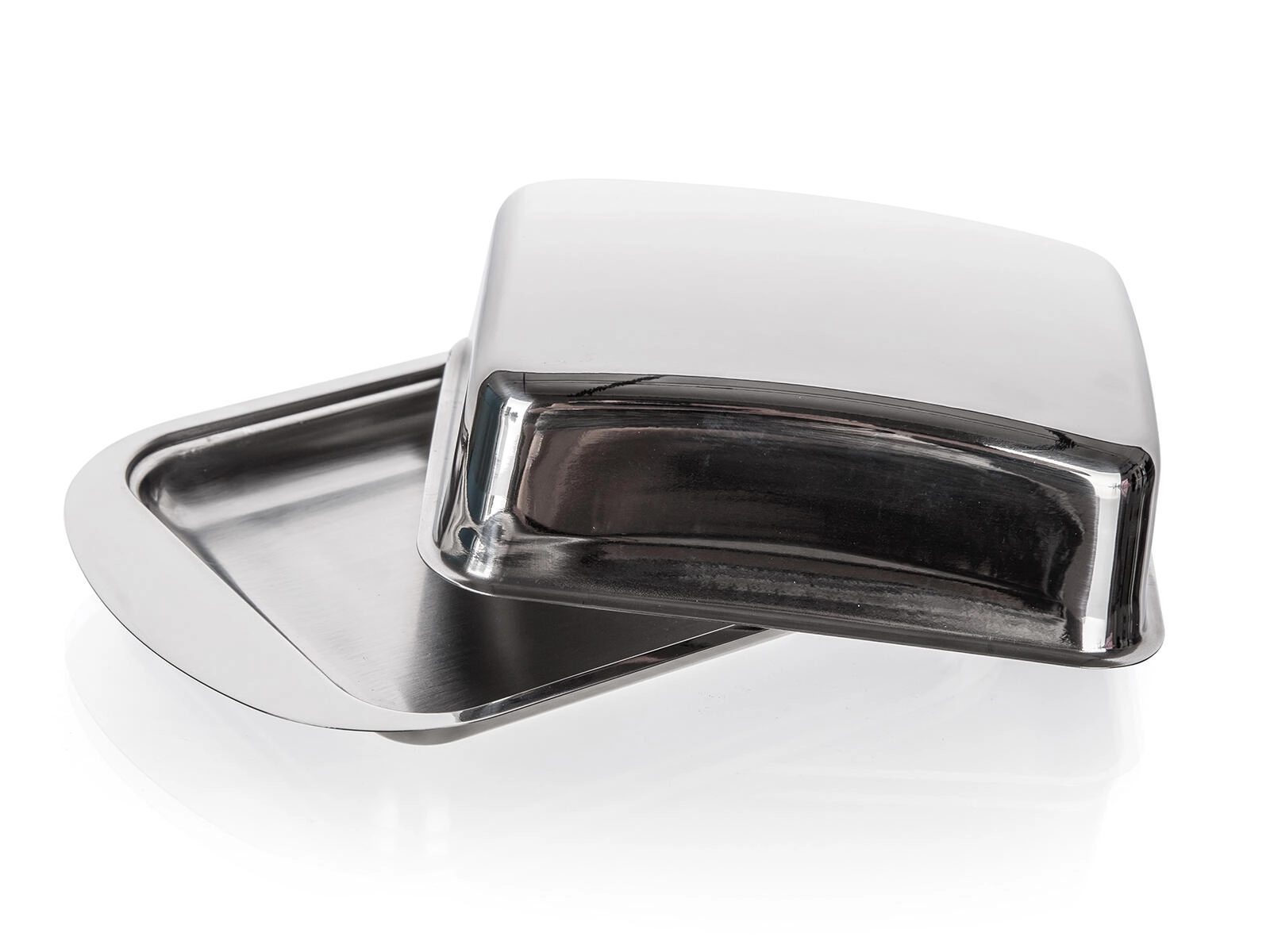 Deze stijlvolle boterschaal van hoogwaardig roestvrij staal beschermt boter tegen licht, geuren en uitdroging. Dankzij het tijdloze design past hij in zowel moderne als traditionele keukens en is hij eenvoudig schoon te houden.