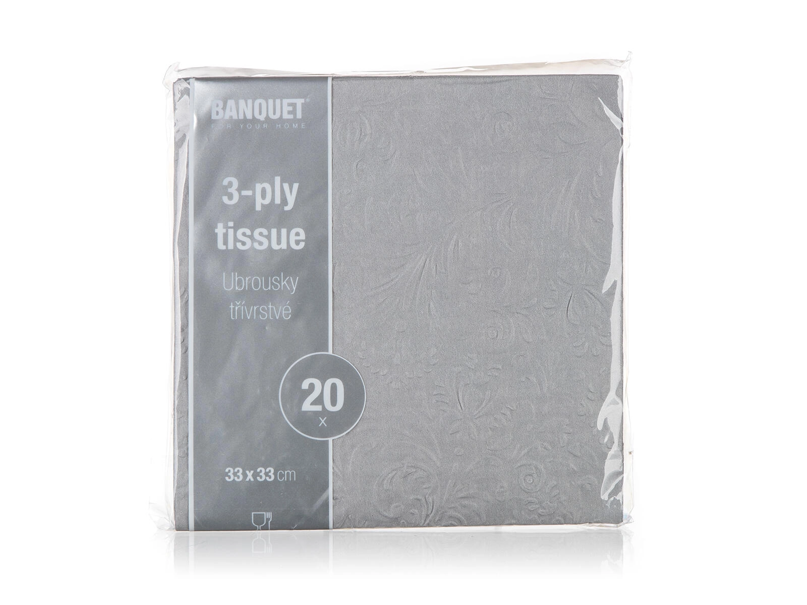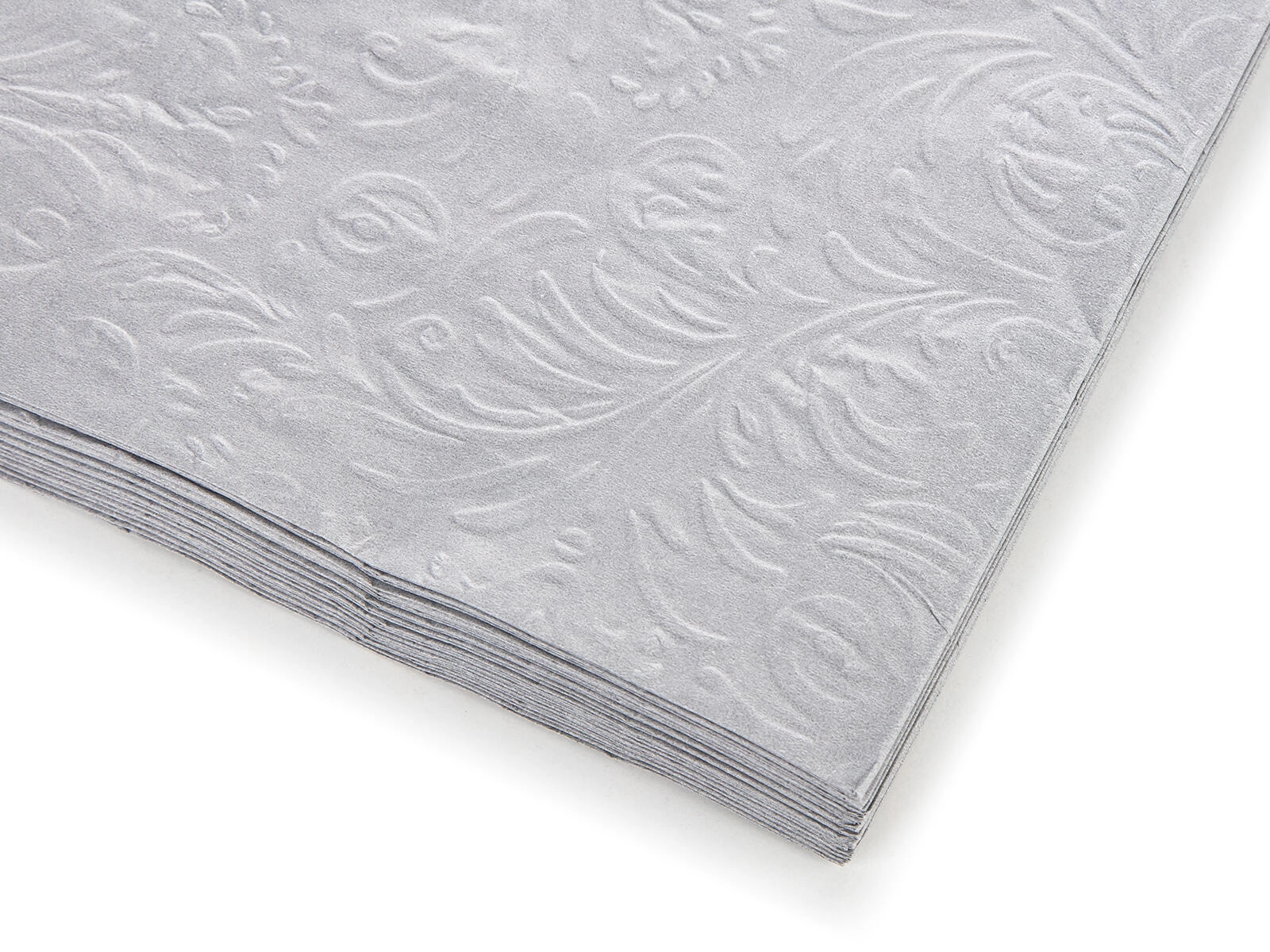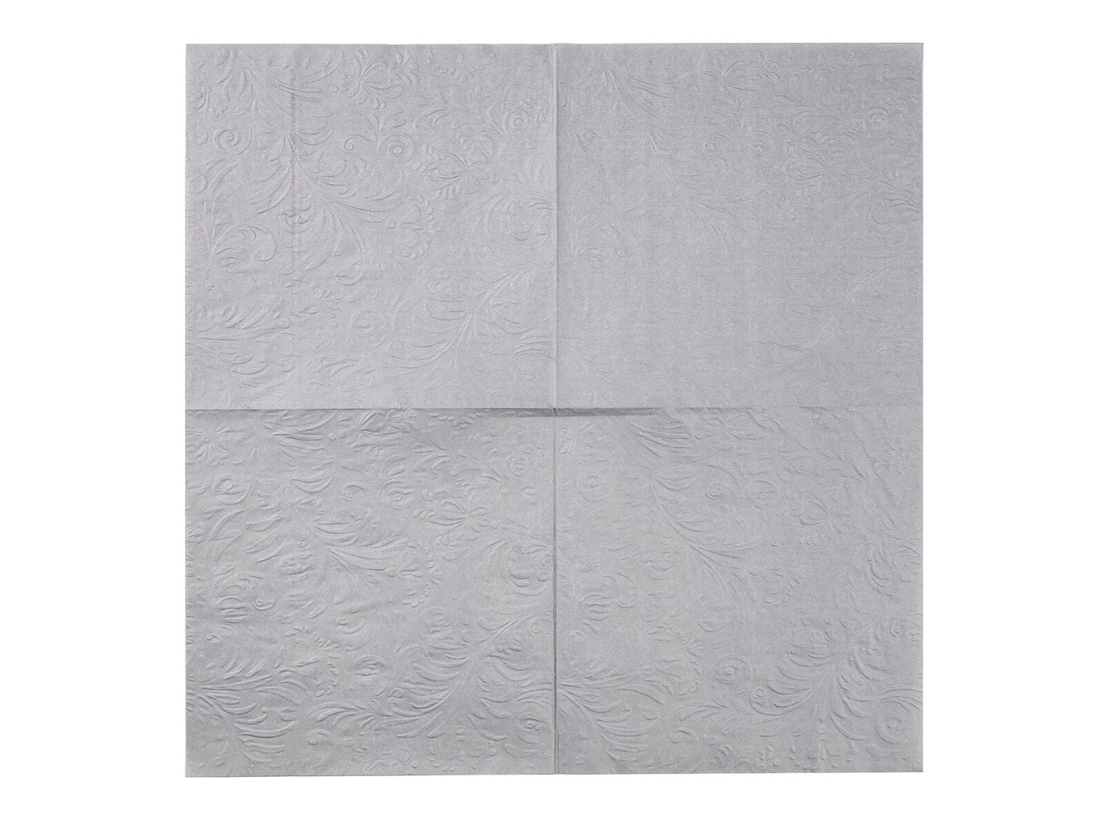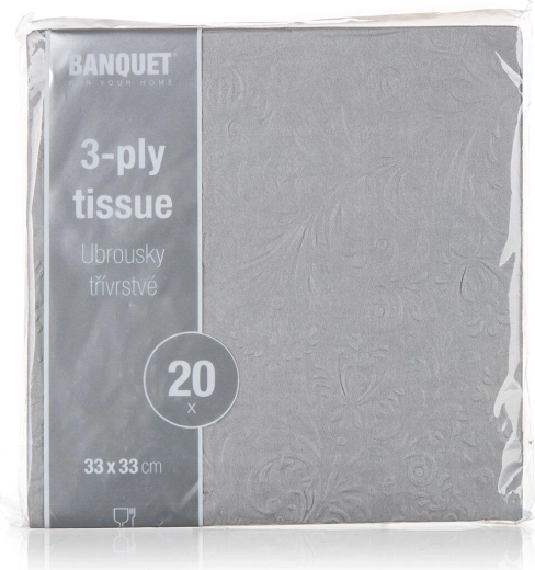 Verfraai uw tafel met grijze servetten met een elegant reliëf die uw gedekte tafel een premium uitstraling geven. Dankzij de 3 lagen zijn ze prettig aanvoelend, stevig en kunnen ze moeiteloos kleine vlekjes en gemorste druppels aan. Het universele formaat van 33 × 33 cm is geschikt voor lunch, diner en hapjes op feestjes.
