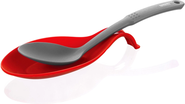 De vormgeving voor het comfortabel plaatsen van pollepels en lepels voorkomt wegglijden en houdt het gerei boven het bakje.