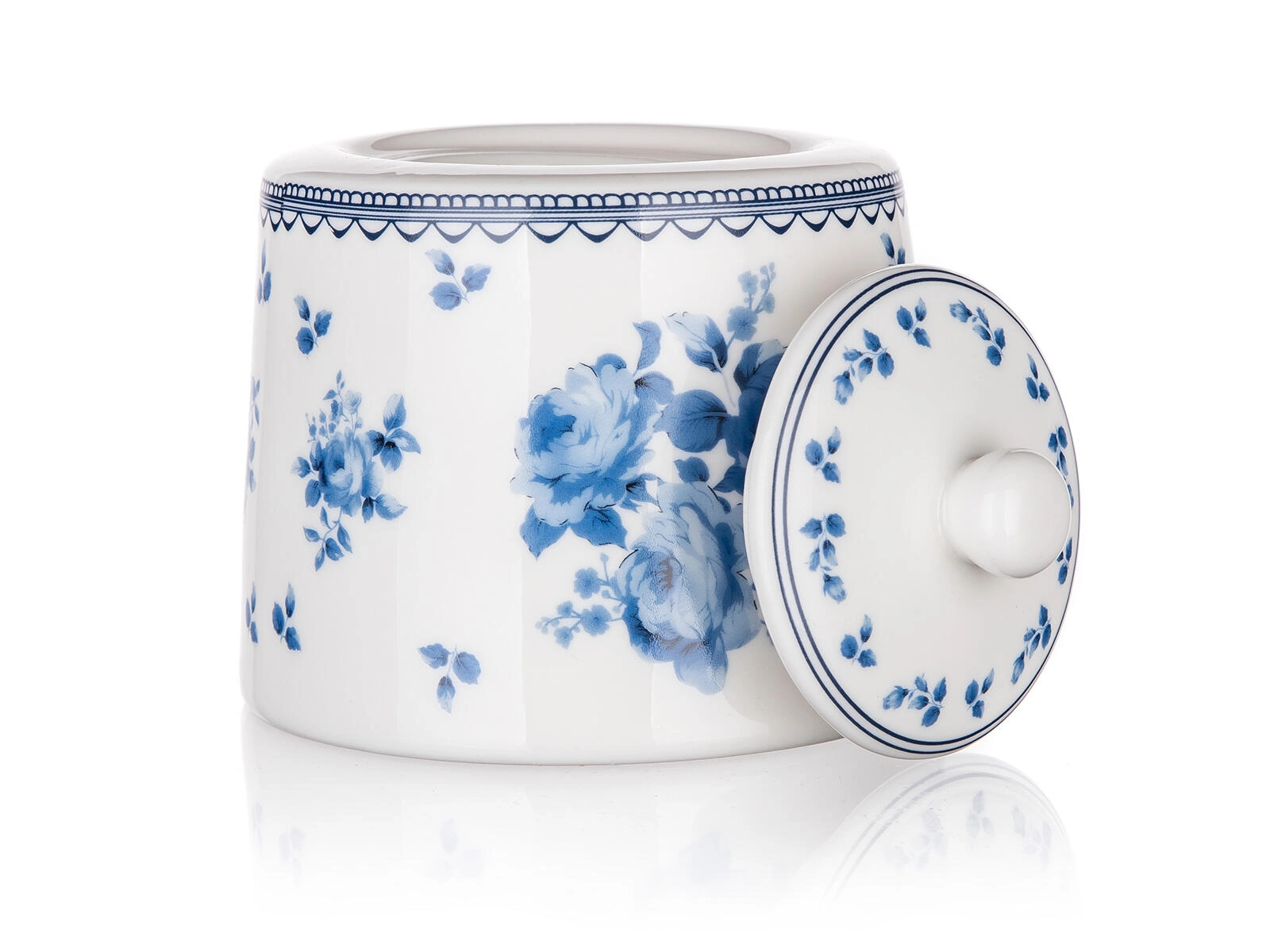 Deze stijlvolle suikerpot met een hoogte van 9,5 cm valt op door de klassieke witte basis met blauw bloemendecor en een praktisch deksel met ronde greep. Hij maakt je tafel compleet bij het serveren van koffie of thee en is dankzij het hoogwaardige glazuur eenvoudig te onderhouden.