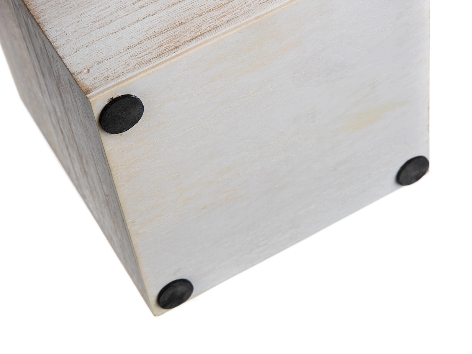 Deze veelzijdige houten doos met afmetingen 13 × 13 × 14 cm biedt praktische opbergruimte en een aantrekkelijk uiterlijk. Het witte “whitewash”-oppervlak past perfect in Scandinavische, Provence- en boho-interieurs, terwijl het subtiele hart aan de voorkant de knusse sfeer van je huis benadrukt.