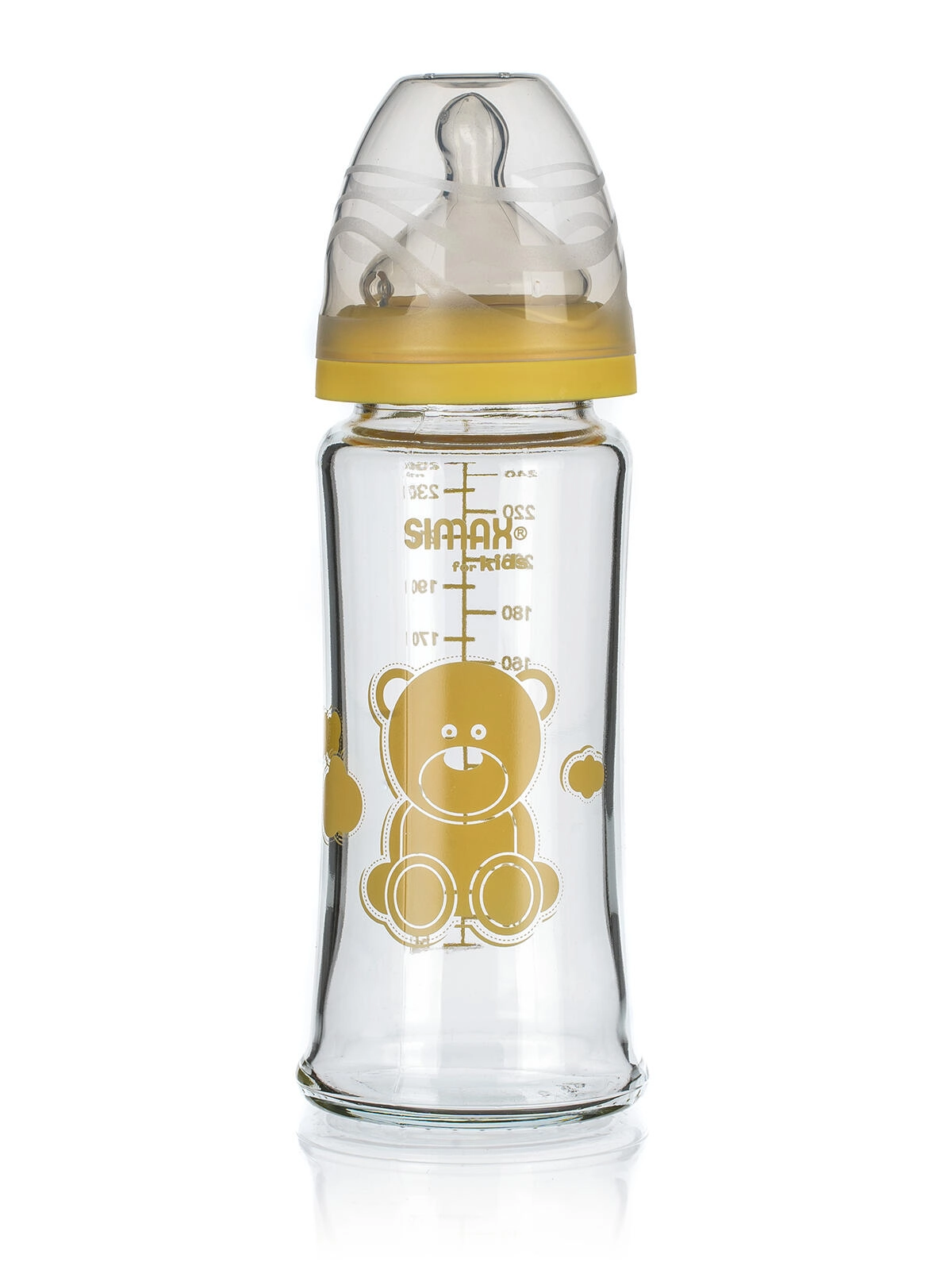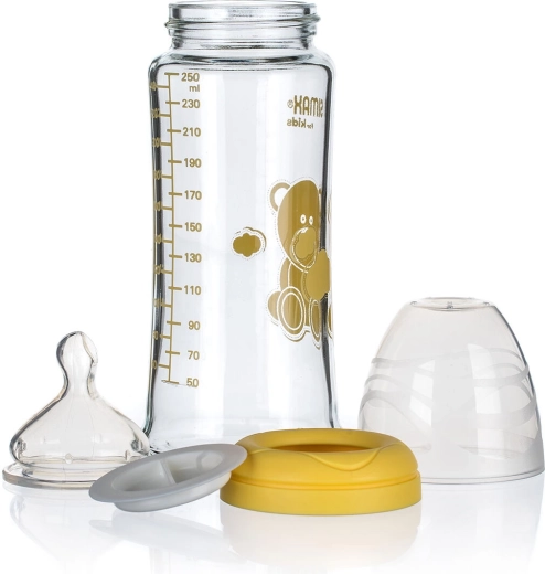 De brede glazen babyfles van 250 ml is gemaakt van hard borosilicaatglas, dat uitblinkt in zowel mechanische als thermische bestendigheid. Daardoor is ze ideaal voor het veilig geven van melk en andere vloeistoffen, zowel thuis als onderweg. Glas neemt geen geuren of smaken op en is 100% hygiënisch veilig.