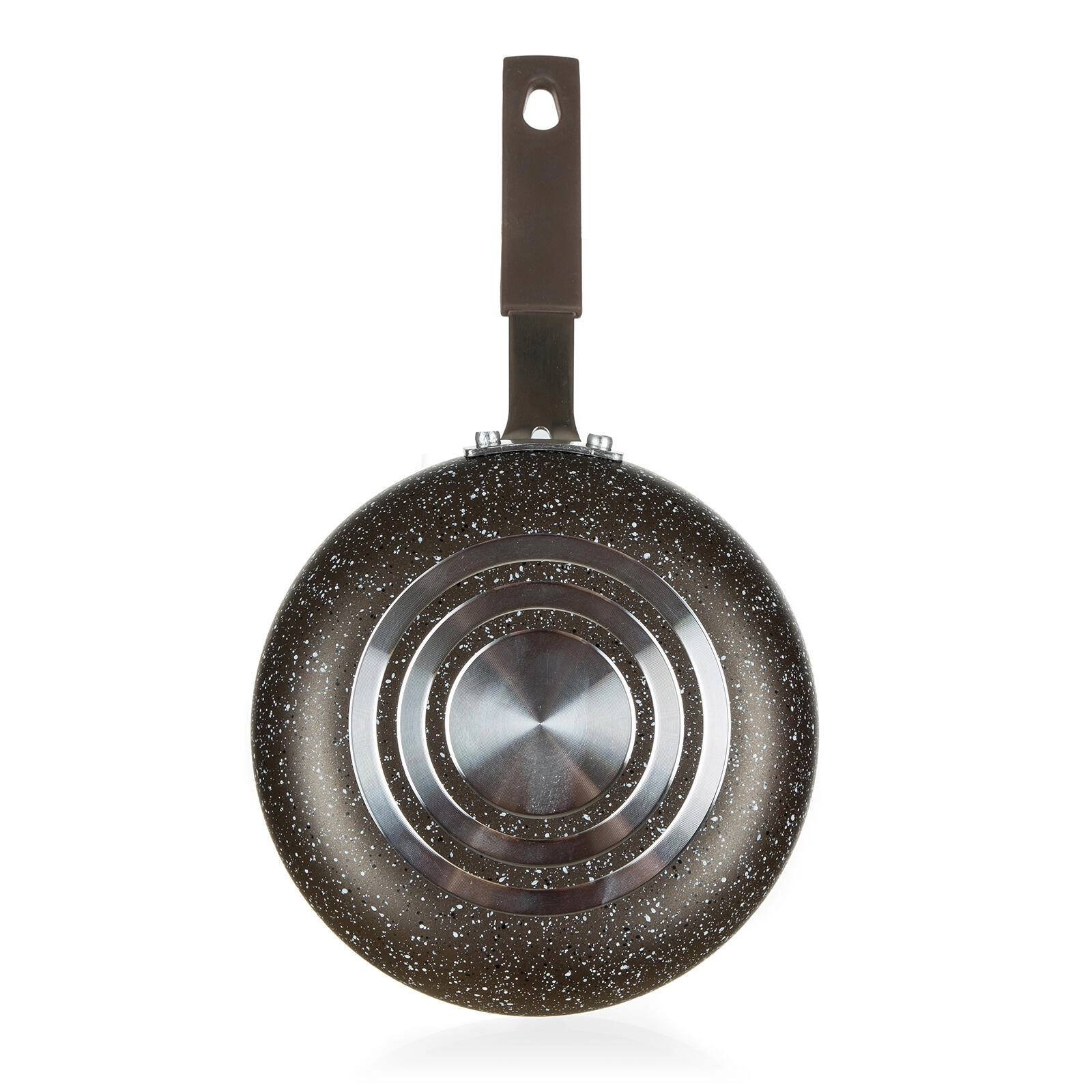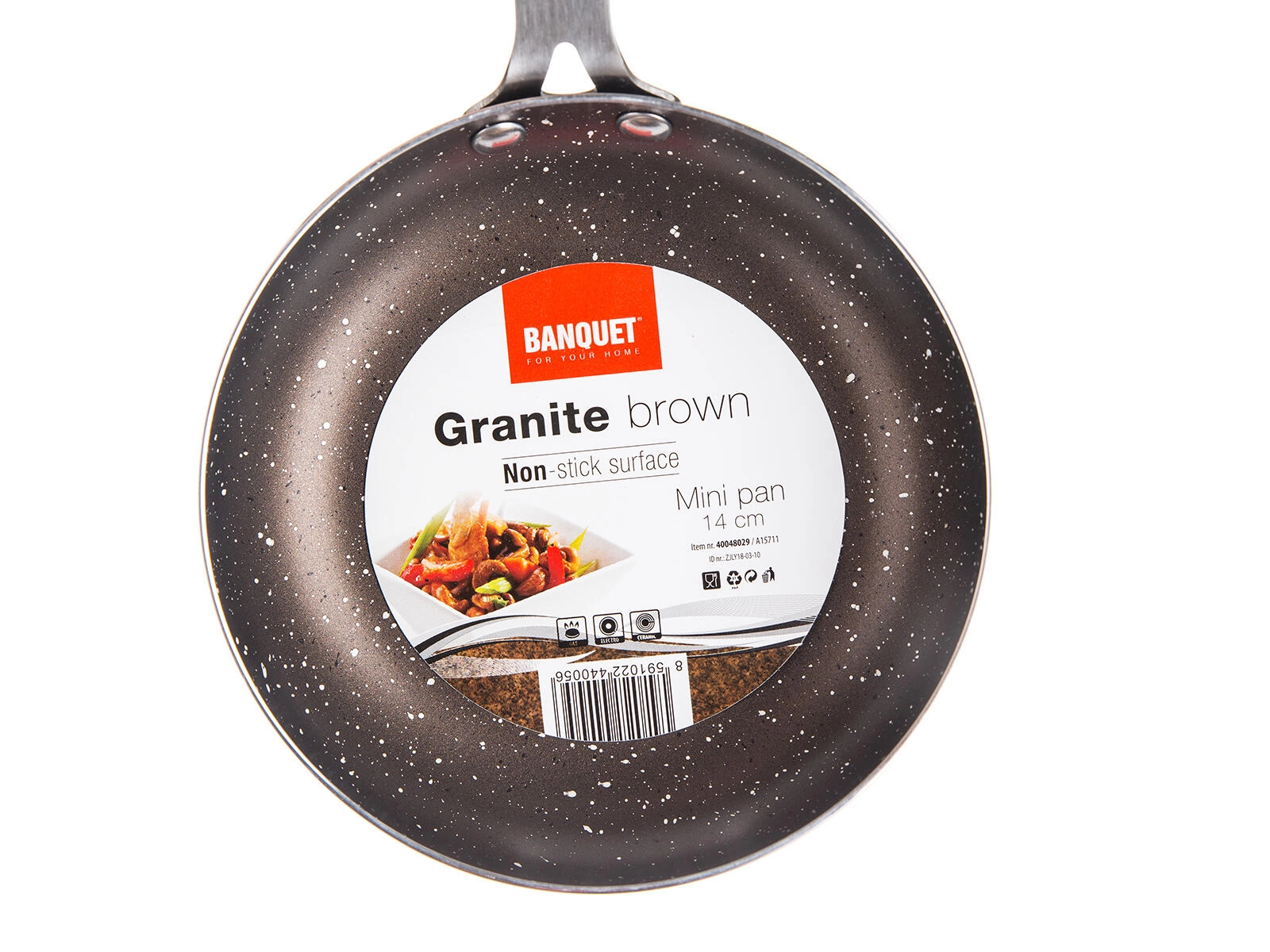 Ontdek de praktische Granite Brown mini-pan met een diameter van 14 cm, perfect voor snelle ontbijten en kleine porties gedurende de dag. Dankzij de 2-laagse antiaanbaklaag met marmerdesign blijft eten niet plakken en is reinigen zo gedaan. De aluminium constructie garandeert gelijkmatige verwarming over het hele oppervlak.
