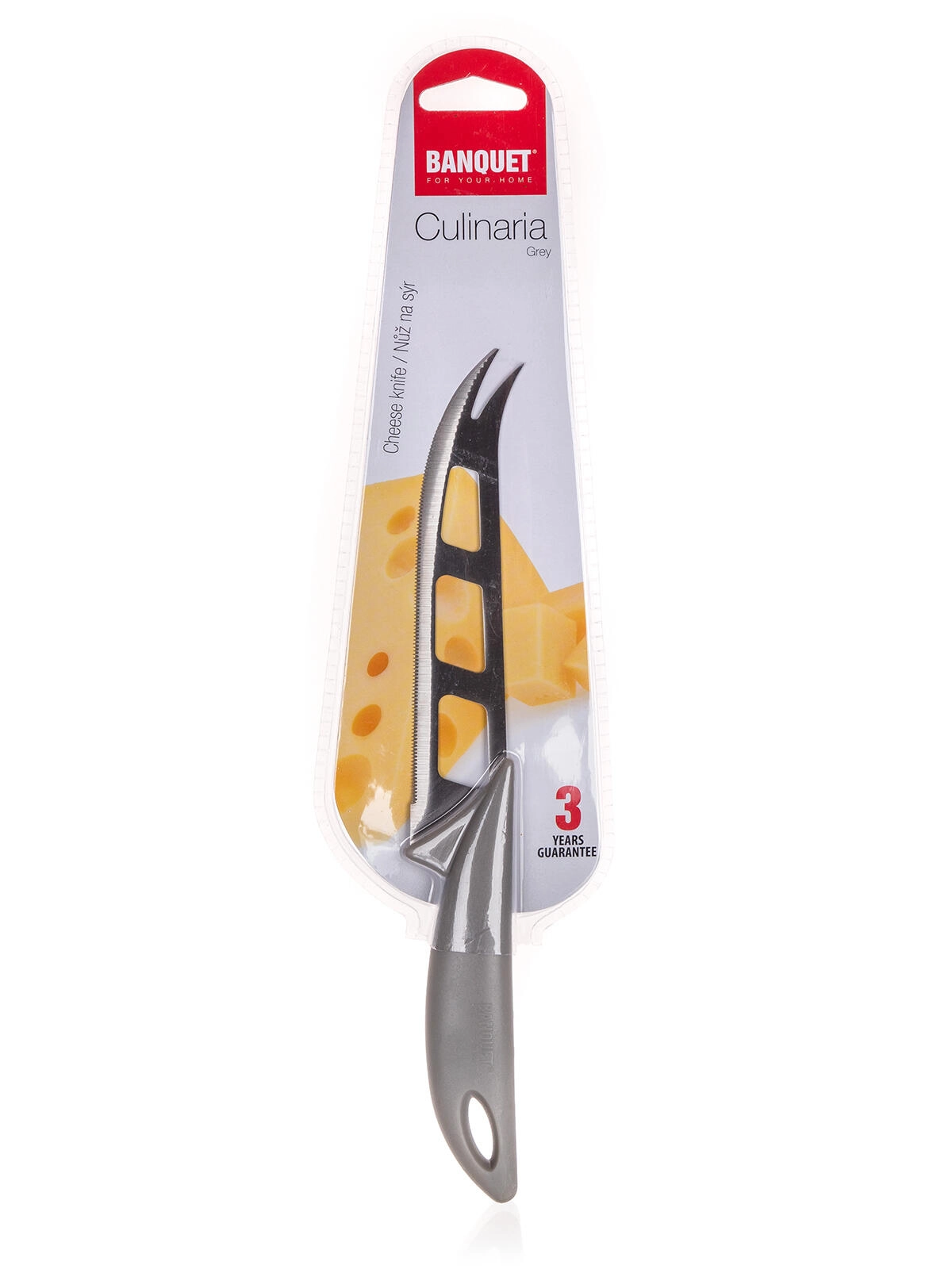 Het Culinaria Grey kaasmes combineert een hoogwaardig stalen lemmet met een ergonomisch handvat voor comfortabel snijden van verschillende soorten kaas. De totale lengte van 24 cm en de uitgebalanceerde constructie zorgen voor zeker handling en soepele sneden zonder brokkelen.