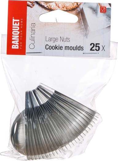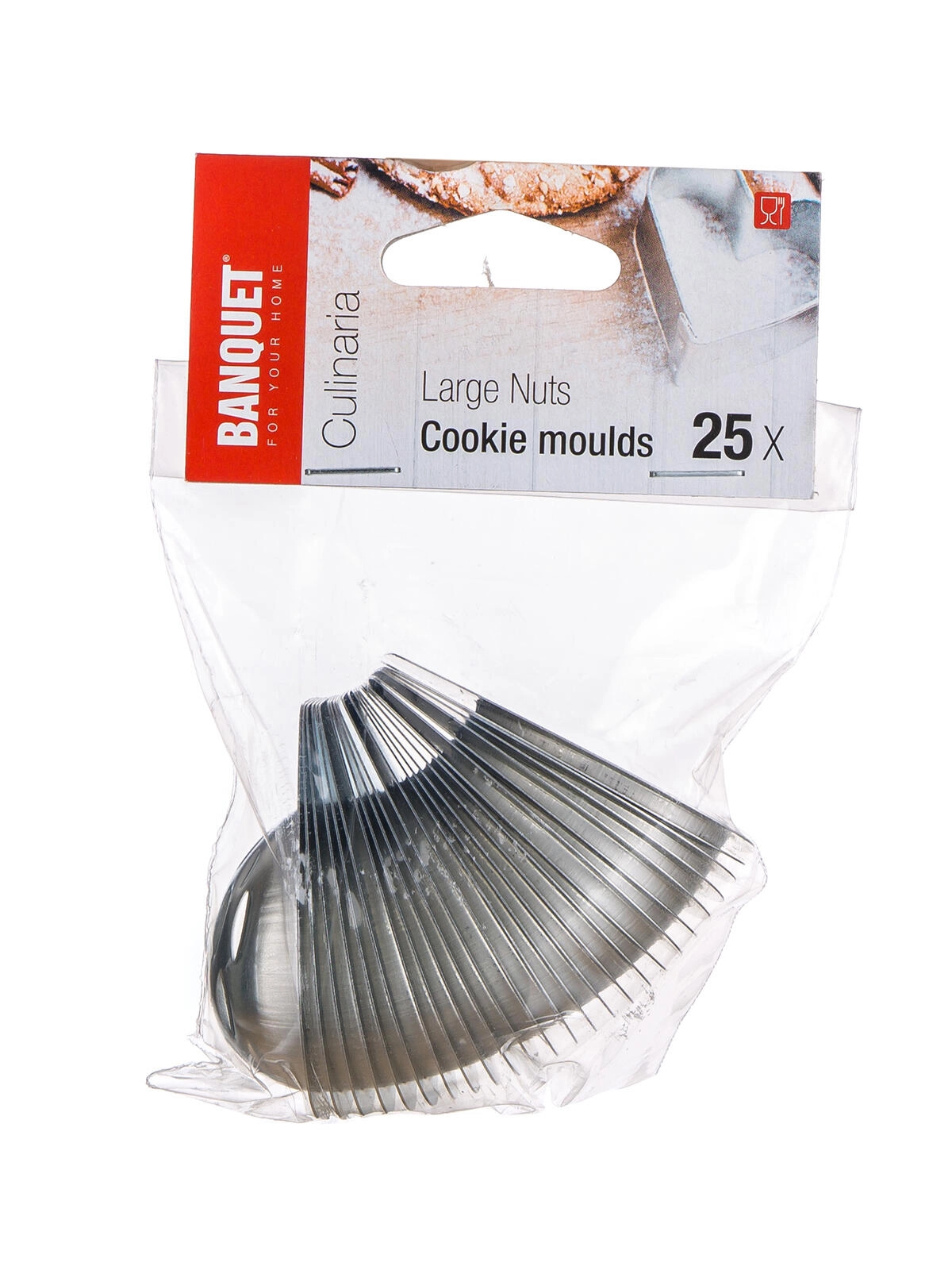 Ontdek de praktische set Culinaria-vormpjes in de vorm van een grote noot voor eenvoudig bakken van zelfgemaakte koekjes. Dankzij het stevige vertinde plaatstaal zijn de vormpjes duurzaam, makkelijk uit te nemen en garanderen ze een egale garing. De verpakking bevat 25 stuks, ideaal voor het bereiden van populaire “noten” en andere zoetigheden.