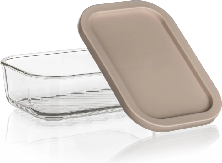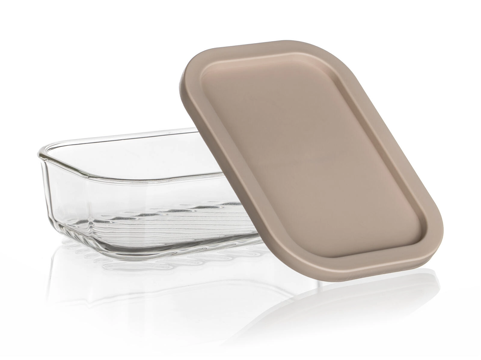 Het glazen deel is hittebestendig en geschikt voor zowel de oven als de magnetron (zonder deksel), waardoor het een uitstekende keuze is voor bakken, opwarmen en serveren. De compacte afmetingen 16 × 11 × 5 cm maken opslag in koelkast en vriezer eenvoudig en besparen ruimte in keukenkastjes.