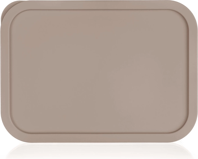 Het stevige plastic deksel in de tint latte helpt voedsel langer vers te houden, vermindert het risico op morsen en beperkt de verspreiding van geuren in de koelkast.