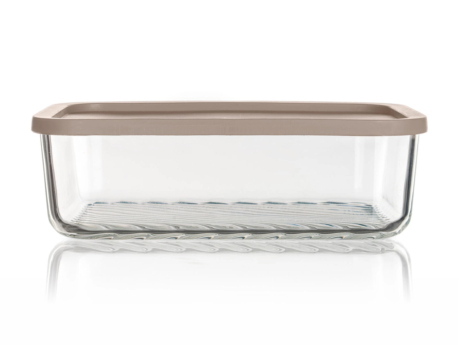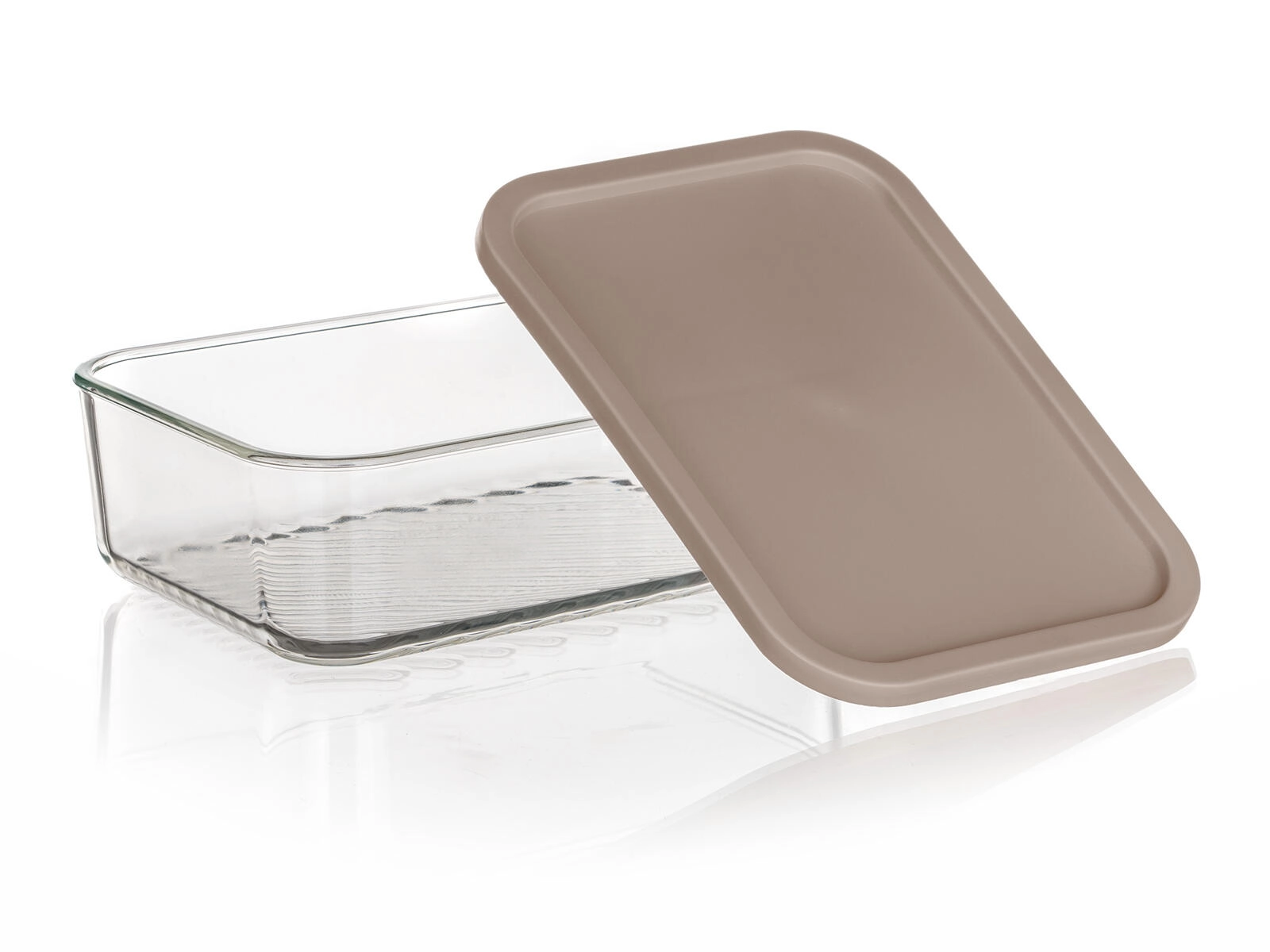 De praktische glazen WAVE-container met een inhoud van 1,55 l is ideaal voor dagelijks bewaren van maaltijden, invriezen en bakken. Het duurzame glas kan in de oven en magnetron worden gebruikt (zonder deksel), terwijl het plastic deksel in de kleur latte zorgt voor betrouwbare afdichting en langdurige versheid. Dankzij de rechthoekige vorm past hij perfect in de koelkast, voorraadkast en reistas.