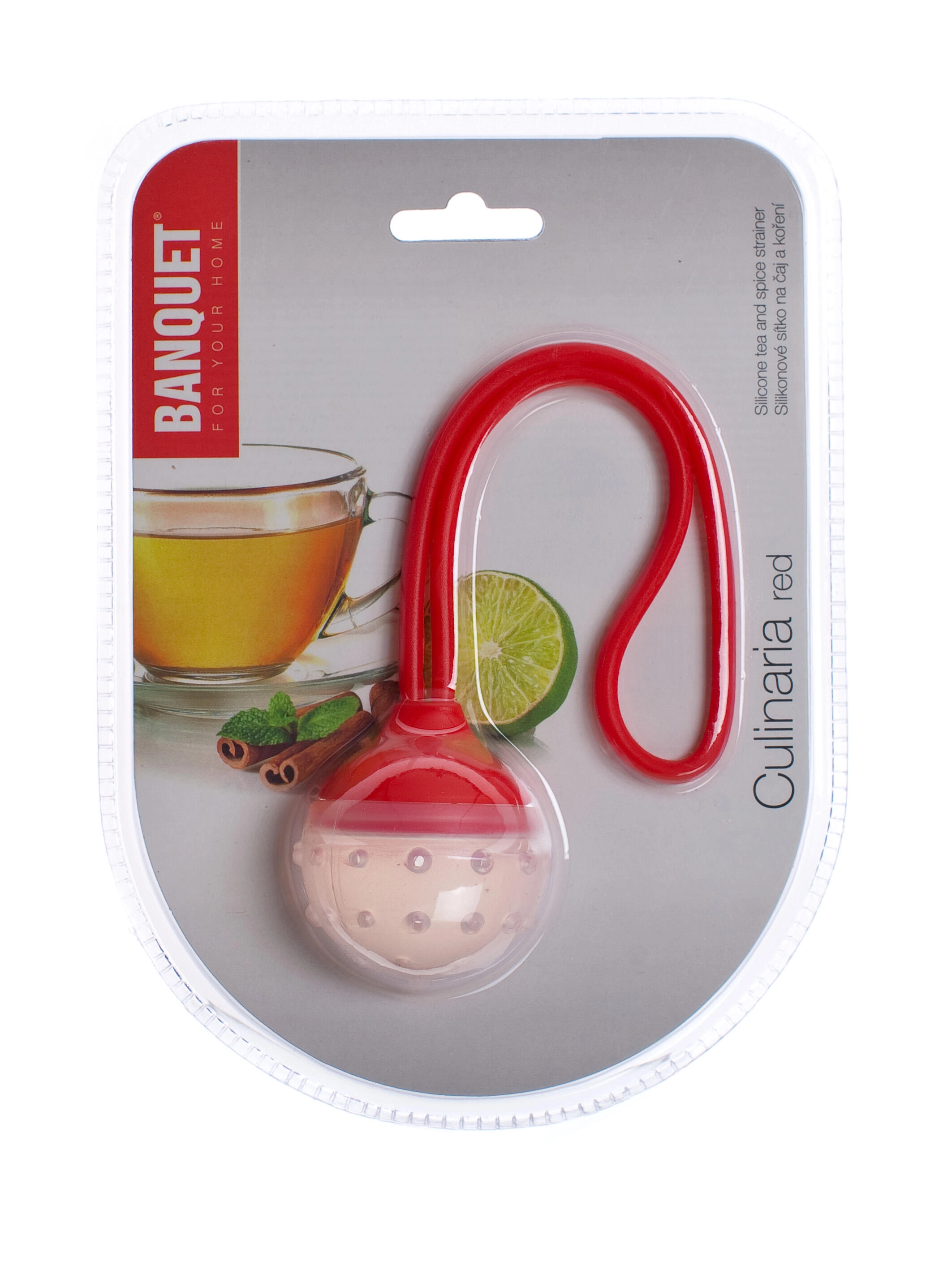 Praktische siliconen thee- en kruidenezeef CULINARIA in het rood maakt het trekken van losse thee en het meekoken van kruiden eenvoudig. Heeft een diameter van 5 cm en een lengte van 22 cm inclusief handvat, is gemakkelijk te reinigen en bestand tegen hoge temperaturen.