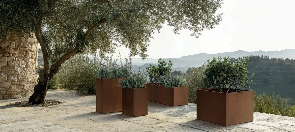 Minimalistische rechte lijnen en de donkergrijze kleur laten zich makkelijk combineren met modern meubilair en natuurlijke elementen, zowel binnen als op het terras.