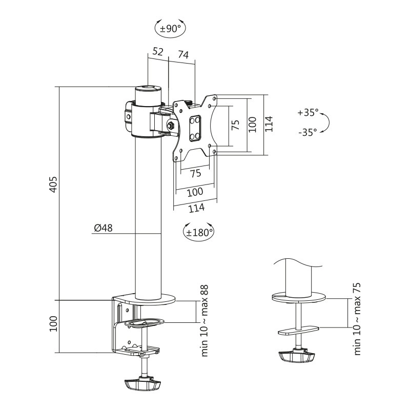 - Twee montagemogelijkheden: C-klem op de bureaurand of doorvoerbevestiging