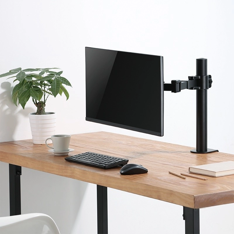 De klembevestiging aan het bureaublad maakt het werkoppervlak vrij en maakt uitschuiven van de arm tot 380 mm mogelijk voor nauwkeurige plaatsing van het scherm.