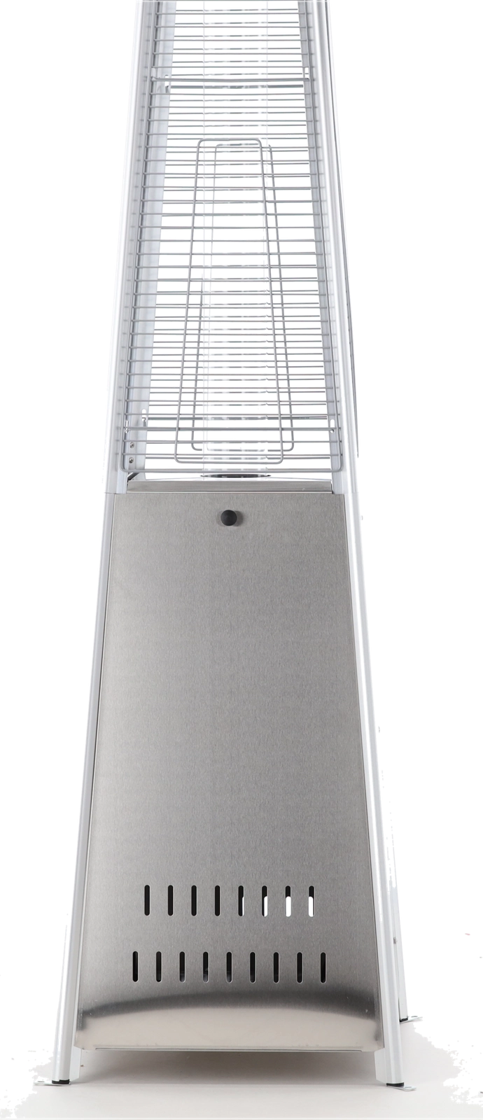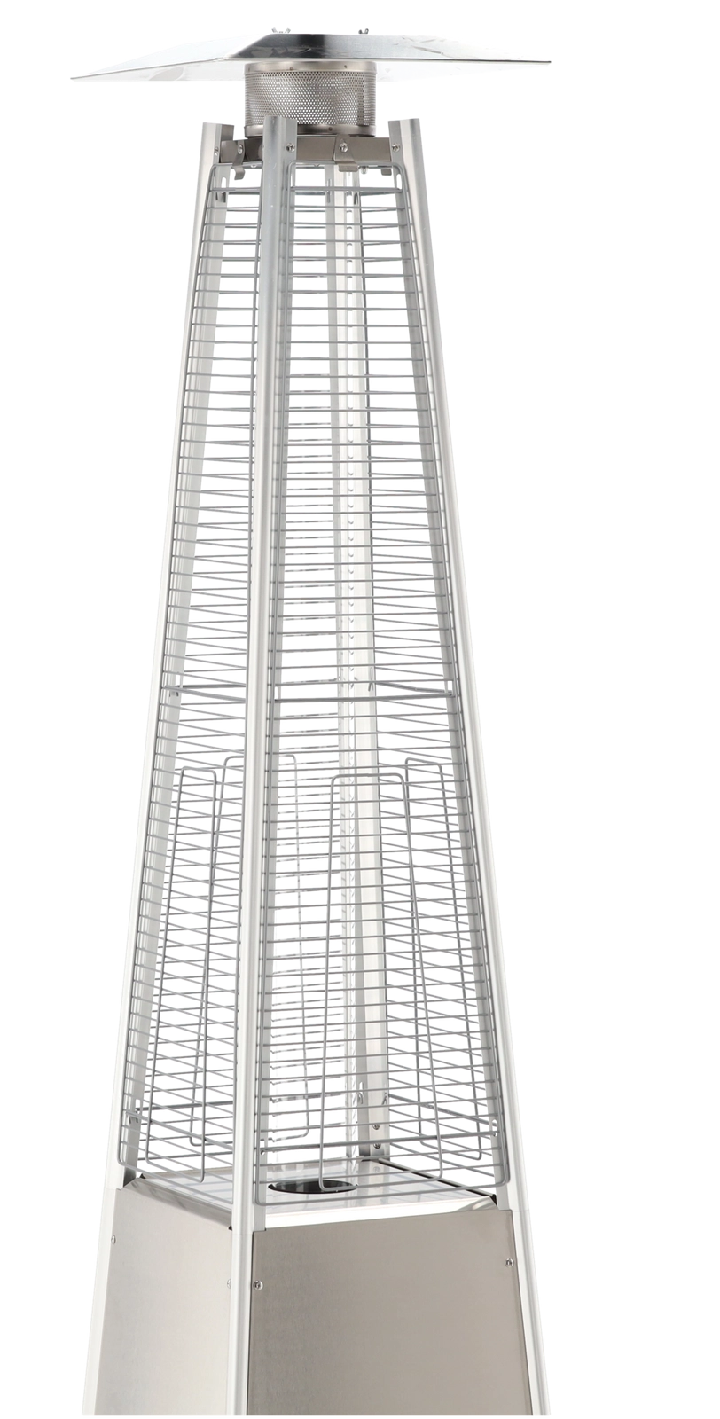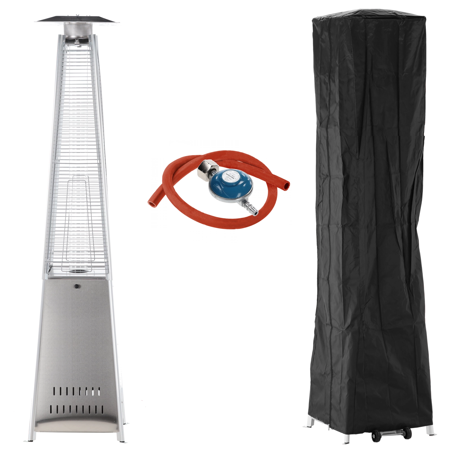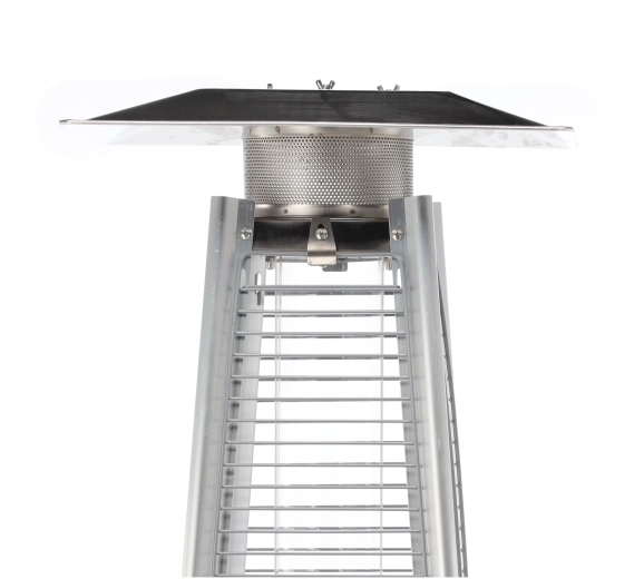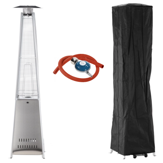 Elegante gas terrasverwarmer van roestvrij staal met een hoogte van 227 cm brengt stijlvolle warmte naar tuinen, terrassen en patio’s. Dankzij de glazen buis met zichtbare vlam creëert hij een unieke sfeer, biedt elektrische ontsteking, dubbele veiligheidsvoorzieningen en is direct na montage klaar voor gebruik – in de verpakking zitten een beschermhoes, slang en drukregelaar.