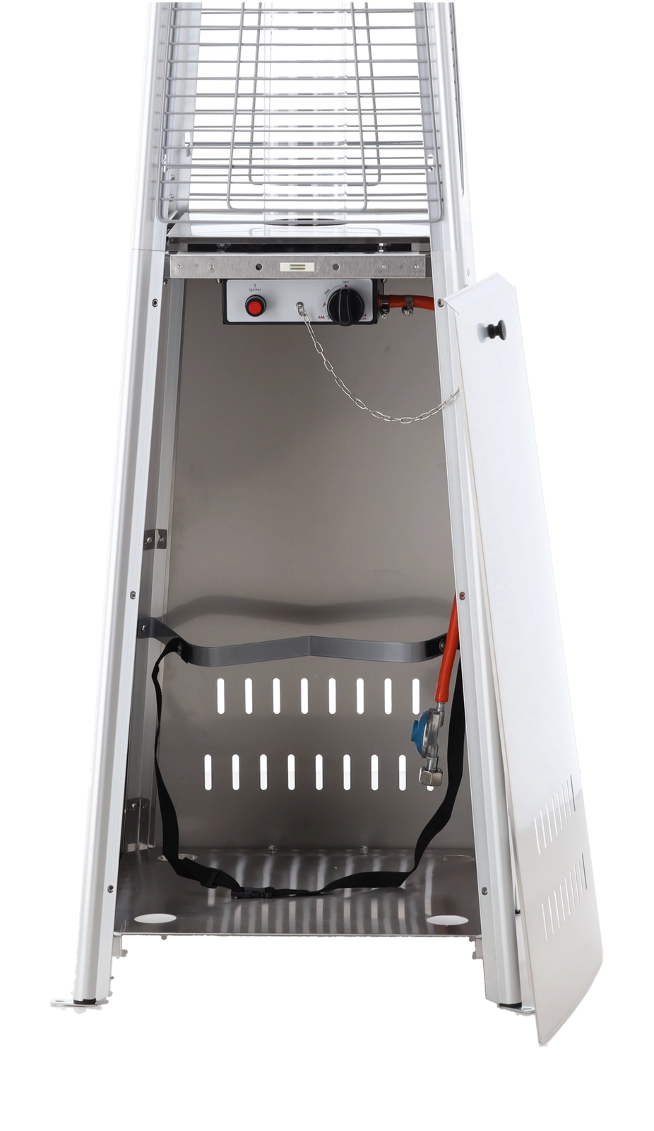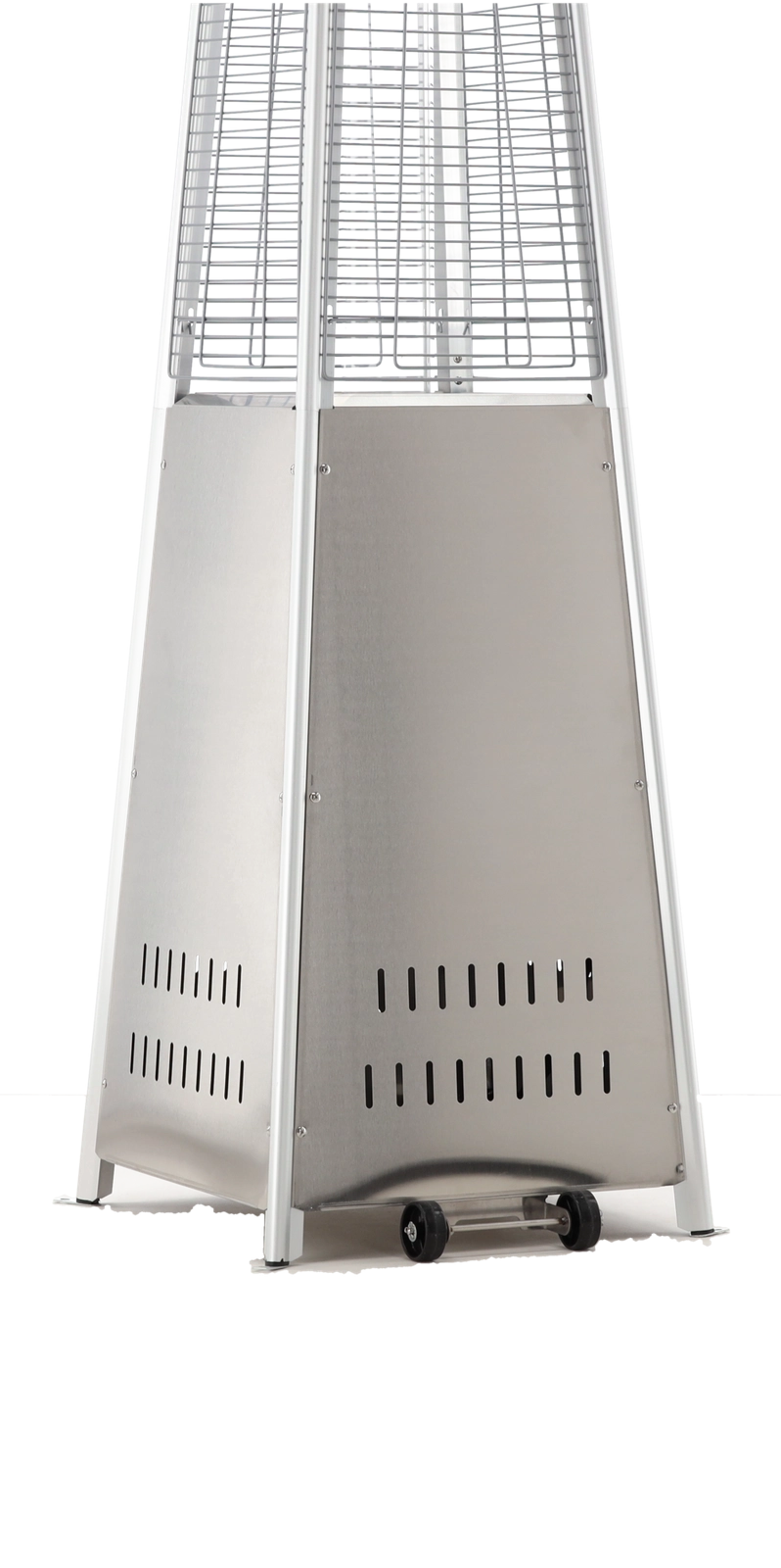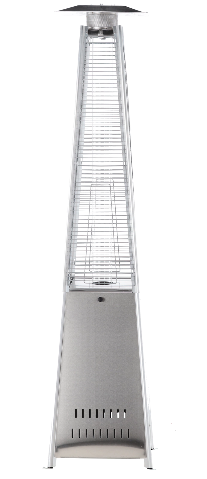 Elegante gas terrasverwarmer van roestvrij staal met een hoogte van 227 cm brengt stijlvolle warmte naar tuinen, terrassen en patio’s. Dankzij de glazen buis met zichtbare vlam creëert hij een unieke sfeer, biedt elektrische ontsteking, dubbele veiligheidsvoorzieningen en is direct na montage klaar voor gebruik – in de verpakking zitten een beschermhoes, slang en drukregelaar.