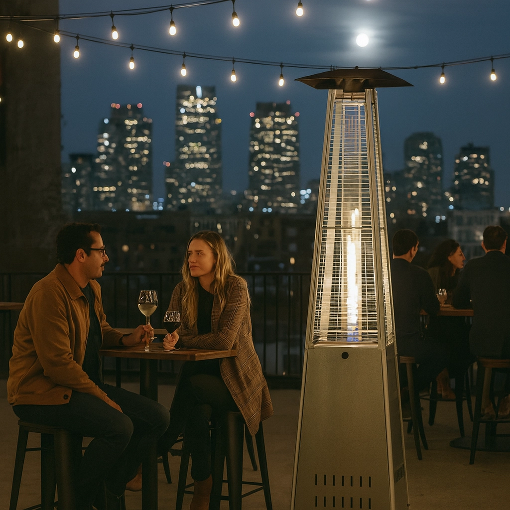 Geniet van warmte precies waar je die nodig hebt. Deze vierkante gasverwarmer van duurzaam roestvrij staal is ideaal voor buitenzitjes – van privé-tuinen tot caféterrassen. De glazen buis met vlam geeft de ruimte een moderne look en aangename, stralende warmte.